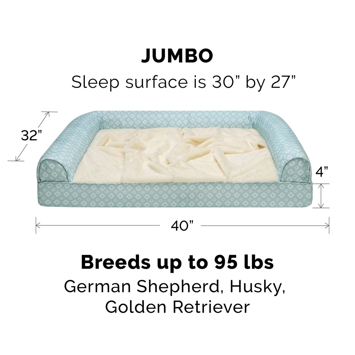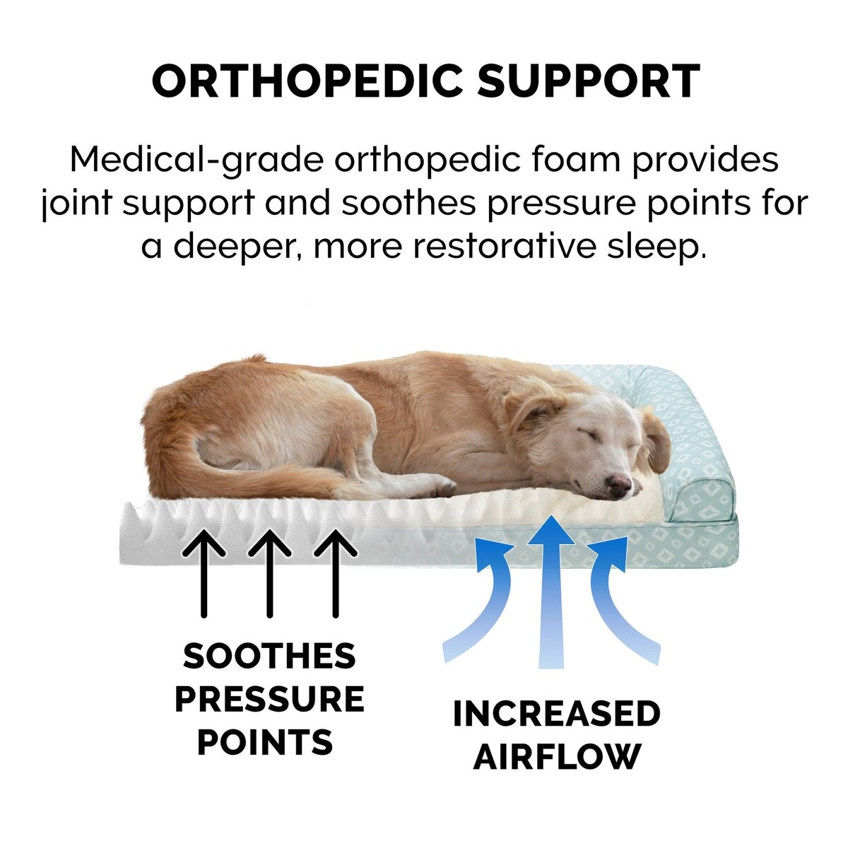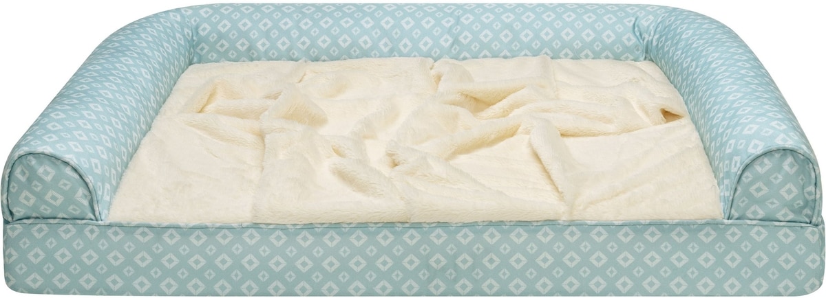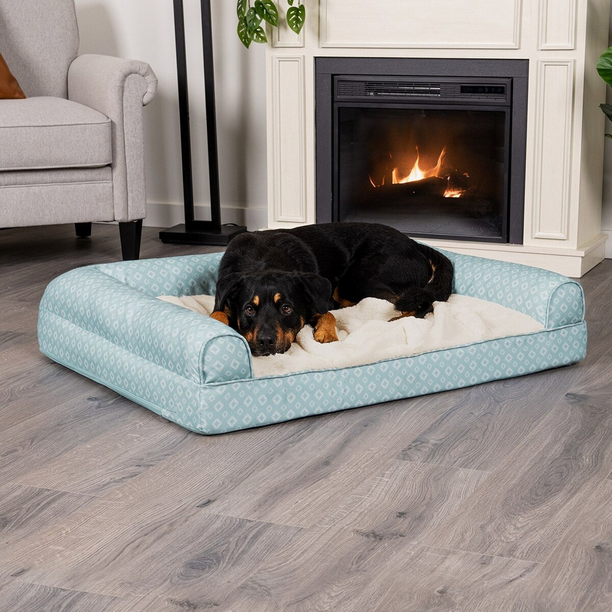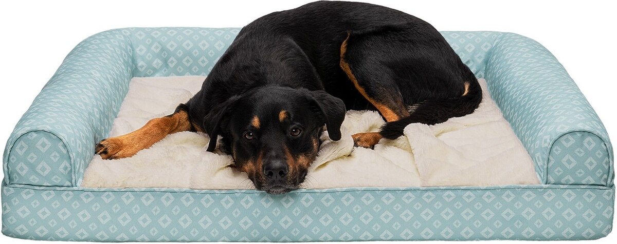 FurHaven Plush Fur & Diamond Print Nest-Top Orthopedic Sofa Cat & Dog Bed, Aqua, Jumbo