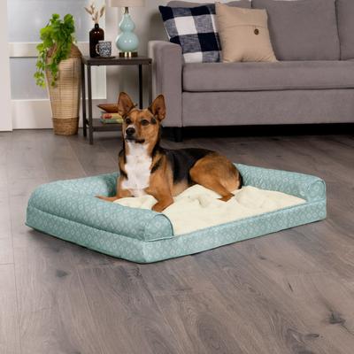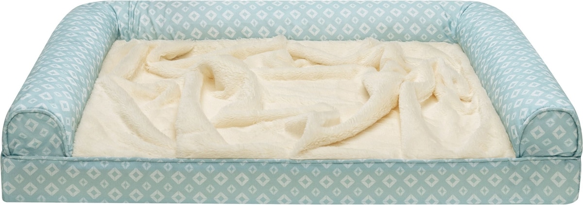 FurHaven Plush Fur & Diamond Print Nest-Top Cooling Gel Orthopedic Cat & Dog Bed with Removable Cover, Aqua, Large