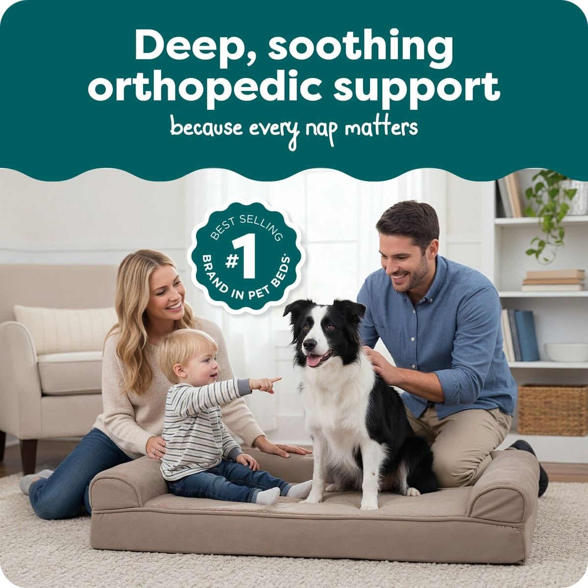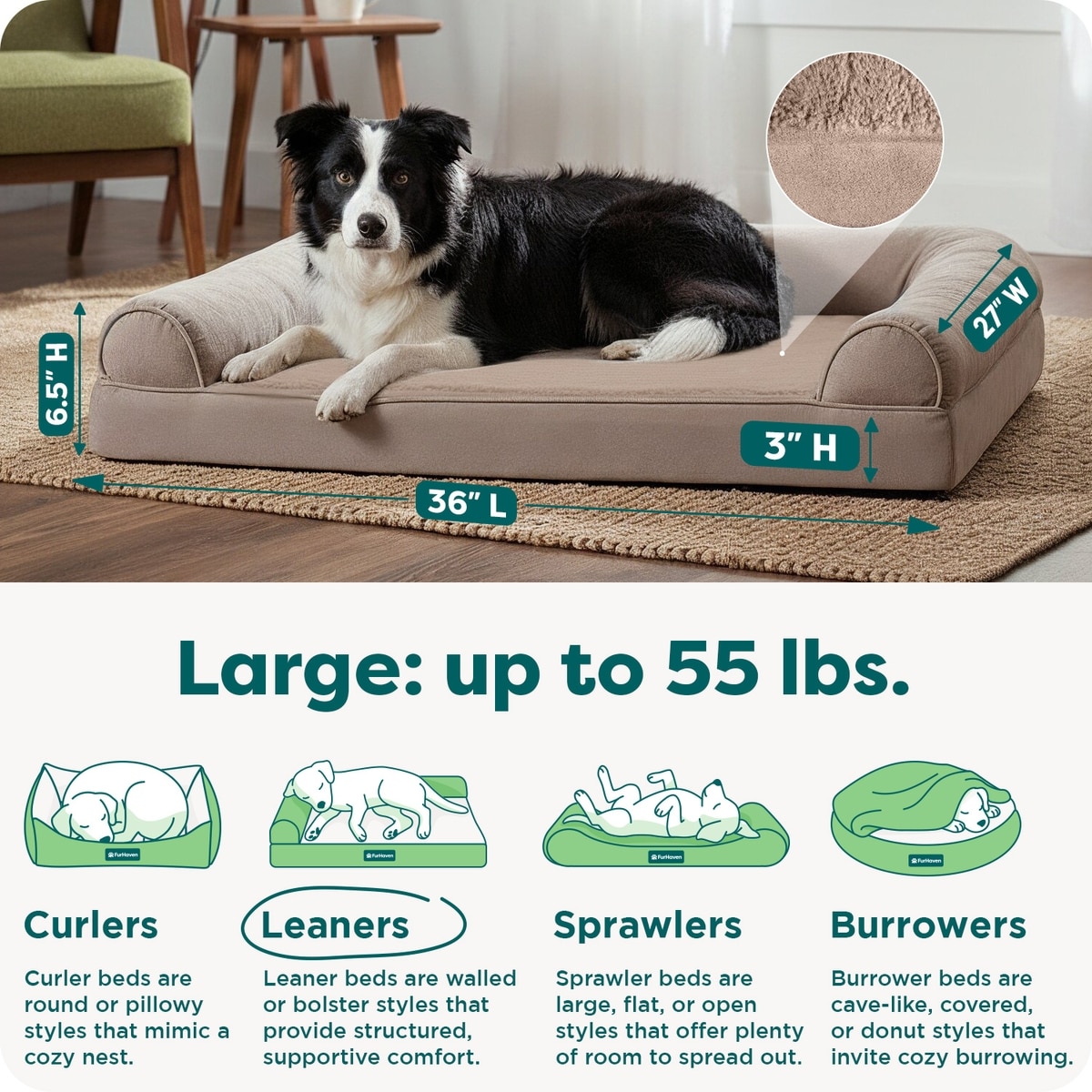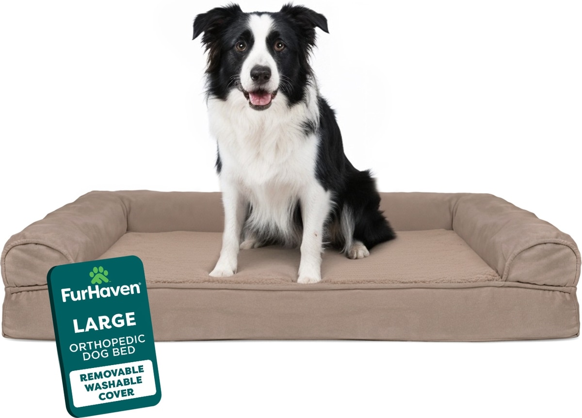 FurHaven Plush & Suede Orthopedic Sofa Cat & Dog Bed, Almondine, Large