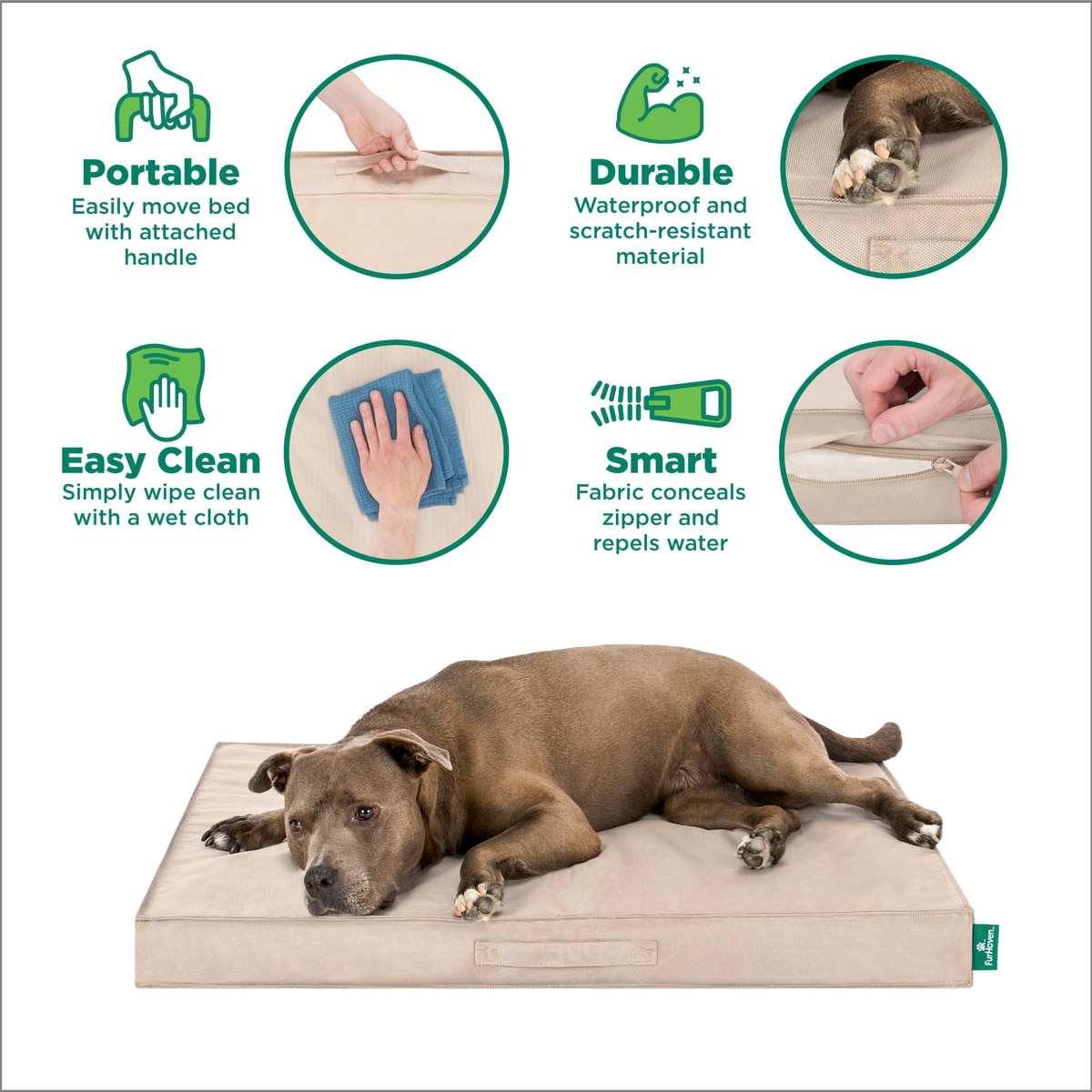 FurHaven Premium Indoor-Outdoor Deluxe Mattress Cooling Gel Dog Bed, Biscuit, Large