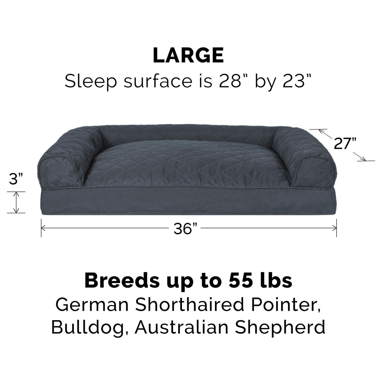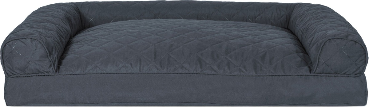 FurHaven Quilted Bolster Cat & Dog Bed with Removable Cover, Iron Gray, Large