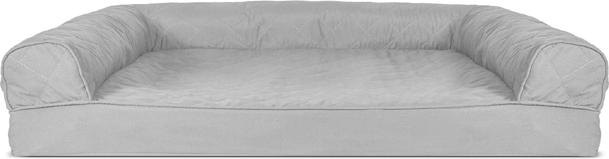FurHaven Quilted Cooling Gel Bolster Cat & Dog Bed with Removable Cover, Silver Gray, Large