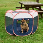 So I used this while waiting for a playpen to house my pup at night and thru the day. After two days he felt good enough to jump on it collapsing it again and again and then finished the tent off by chewing a hold thru in it to get out.
