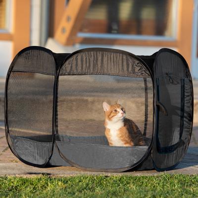 Found the kitten in the trucks spare tire. He was so tiny and we Needed something to keep him in. The size was perfect- fits a litter box, Small cat tree, a place to sleep and toys. Downside it is VERY collapsible- kitten crawls up the side and it caves in- had to Jerry rig some fasteners to keep that from happening. The other thing is it hasn’t held up well to kitty claws- many holes already and it’s been 2 weeks. Also the zipper for the door is super sketchy- a good push and it just opens right up. With that being said it is tent material so I can’t be too critical- I love the design and concept- keeps him safe at night- wish it was a bit sturdier. I gave 4 stars because it’s super easy to set up and def works in a pinch.