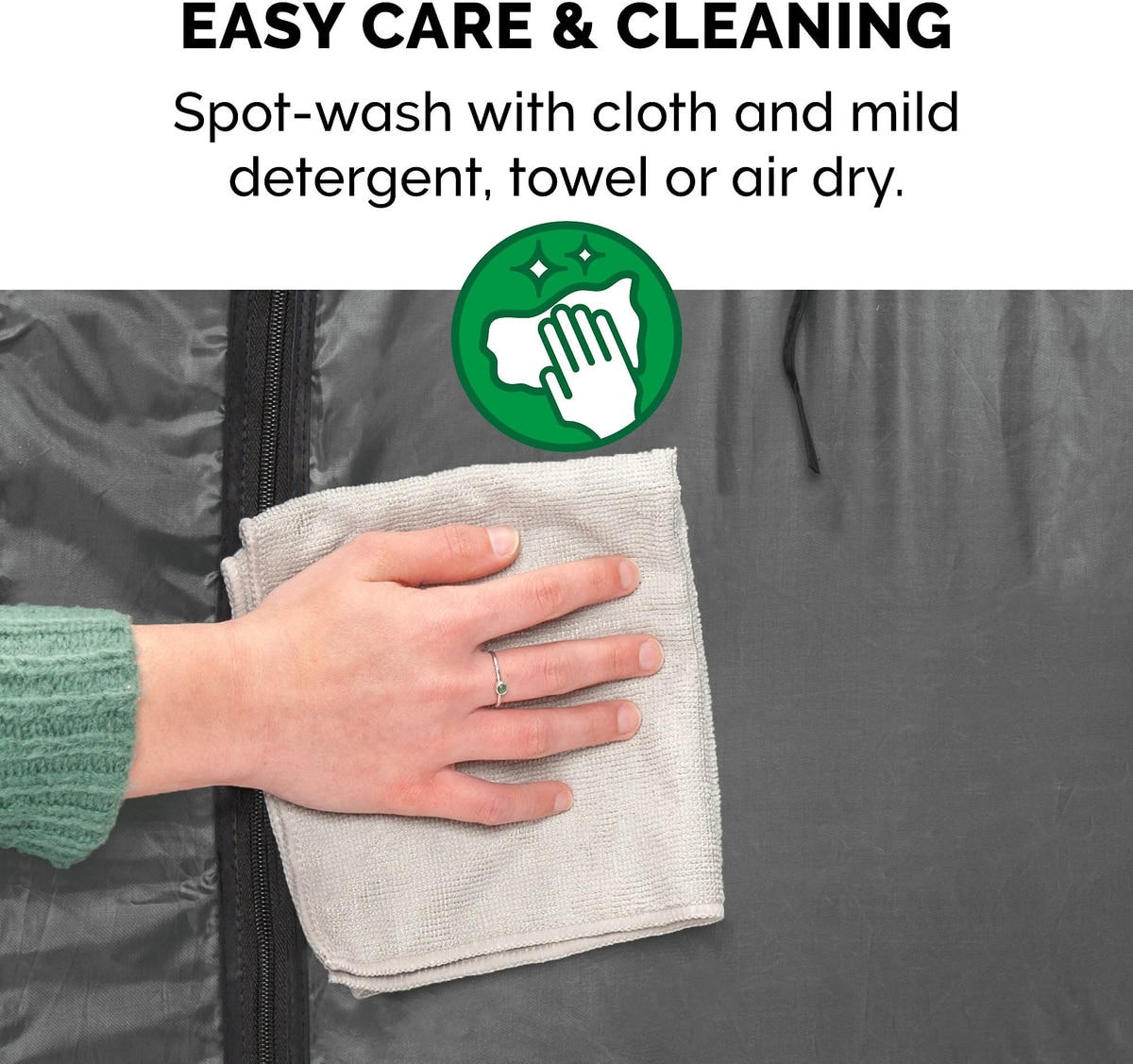 Care: Shake debris and hair from playpen as needed. Use mild soap and cold water to gently wash playpen. No bleach. Rinse well. Air dry completely before use.