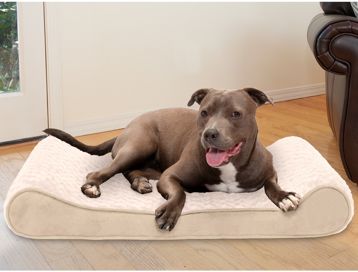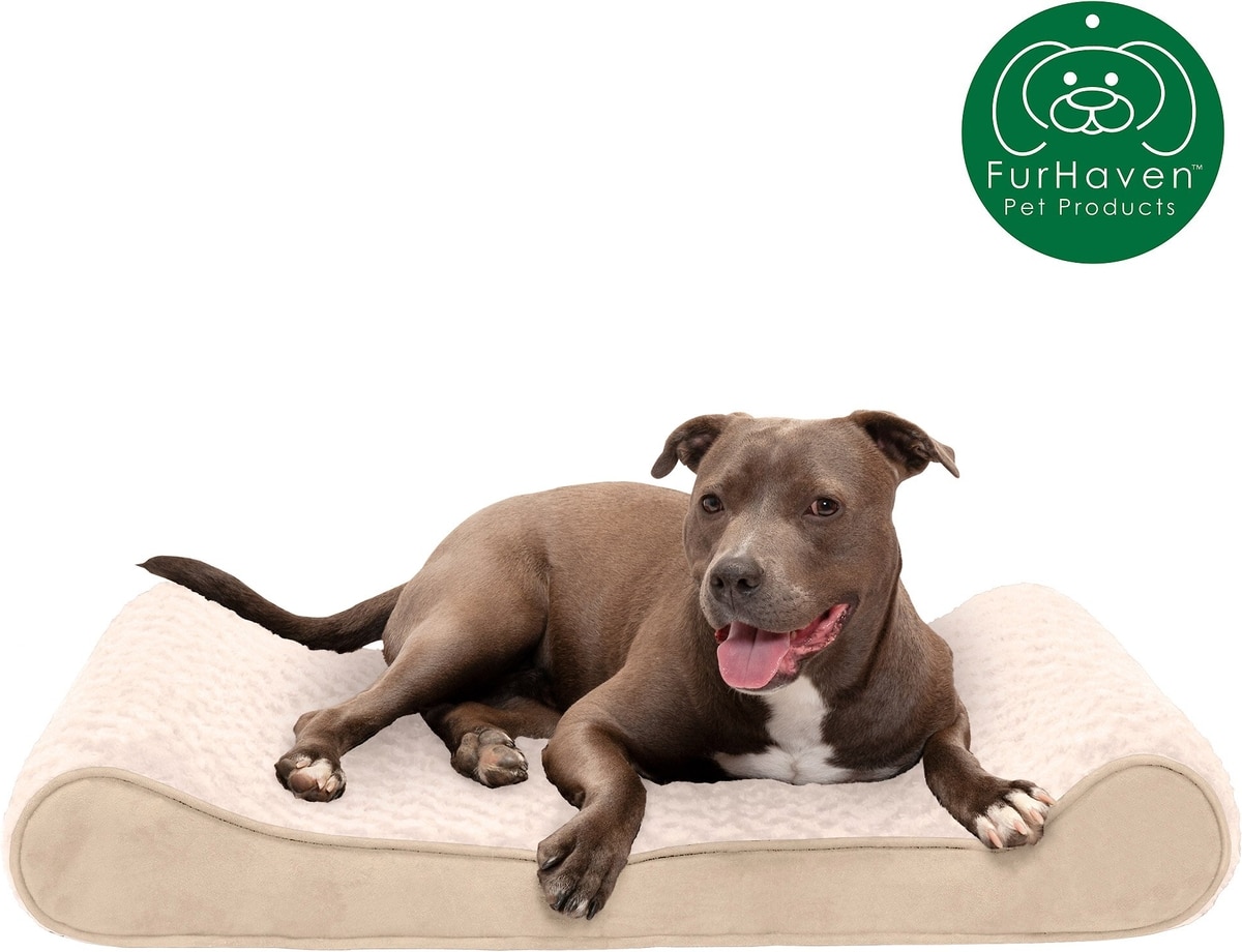 FurHaven Ultra Plush Luxe Lounger Cooling Gel Dog Bed with Removable Cover, Cream, Large
