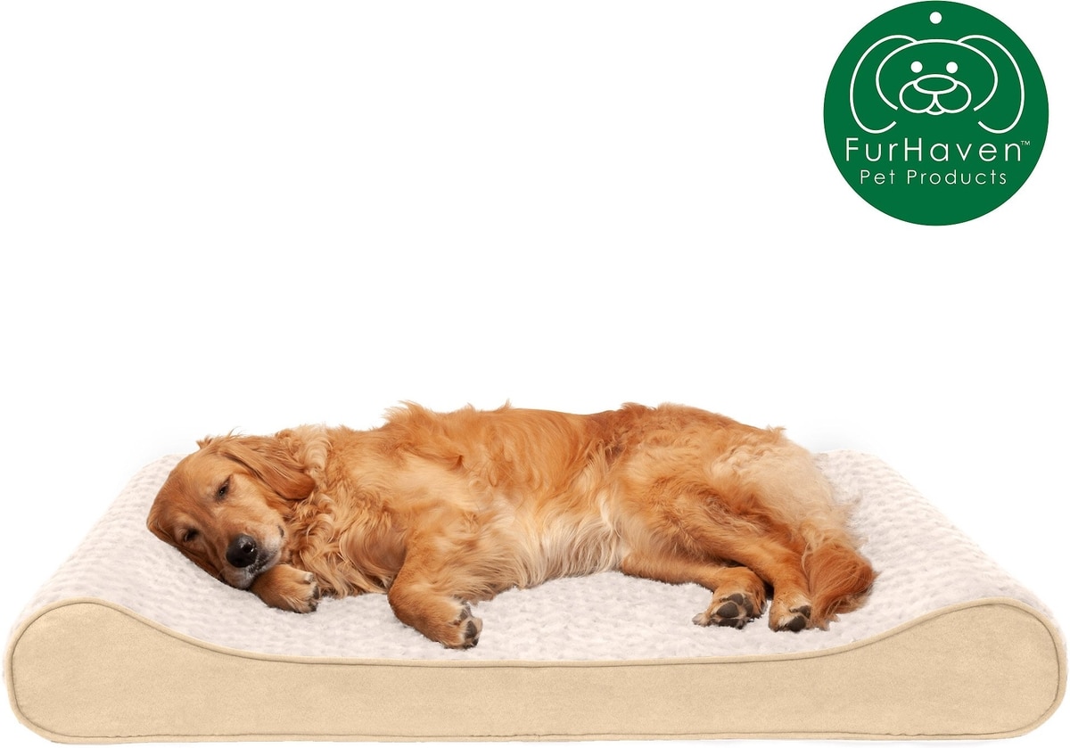 FurHaven Ultra Plush Luxe Lounger Cooling Gel Dog Bed with Removable Cover, Cream, Jumbo