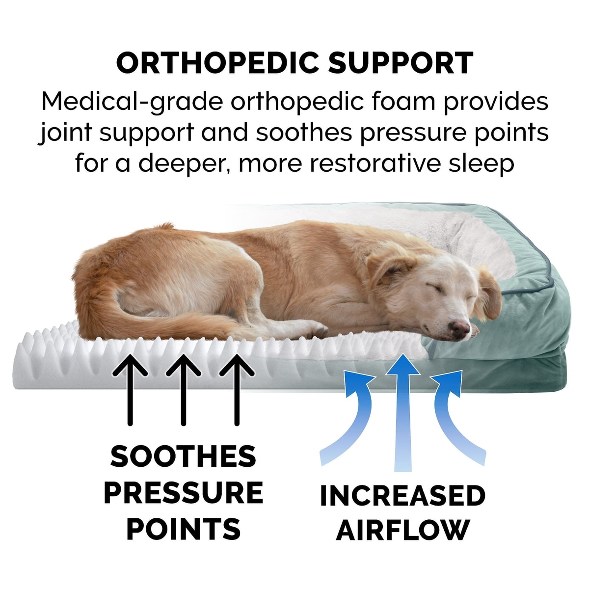 FurHaven Velvet Waves Perfect Comfort Orthopedic Sofa Cat & Dog Bed with Removable Cover, Celadon Green, Medium