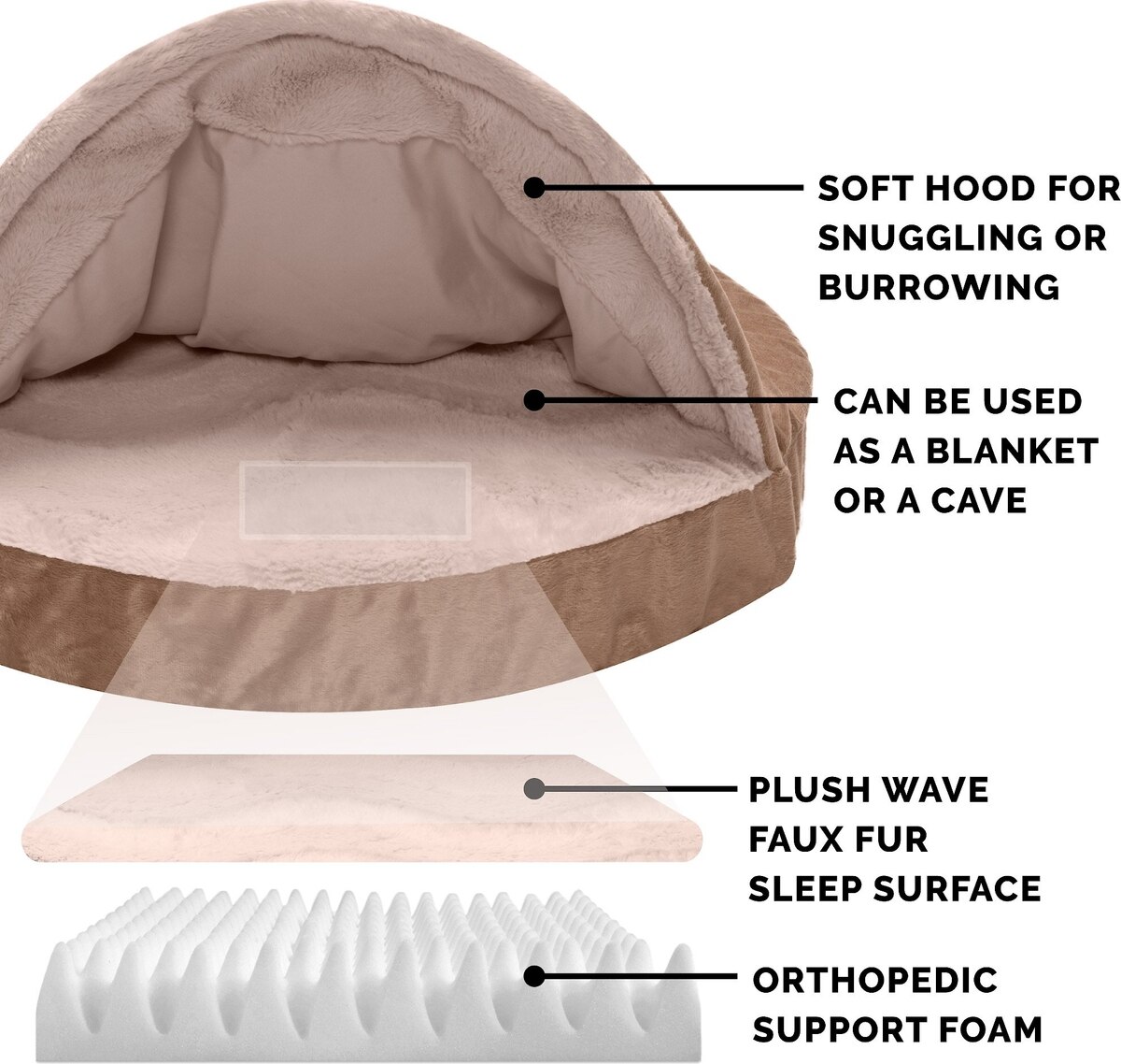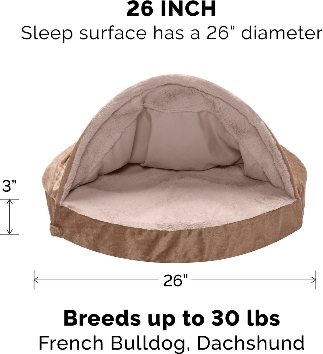 FurHaven Wave Fur & Velvet Orthopedic Snuggery Dog & Cat Bed, Brownstone, 26-in