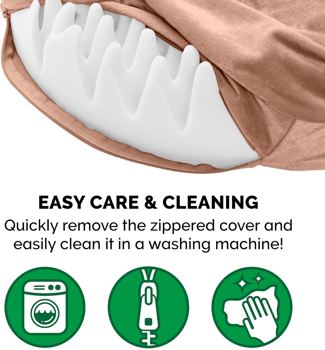 The zippered-style bed cover is easy to remove for hassle-free cleaning, which is especially convenient if you have a pet who always seems to find the best dirt piles and mud puddles. The cover can be hand- or machine-washed with cold water and a gentle detergent. For best results, line dry or tumble dry on a low setting.