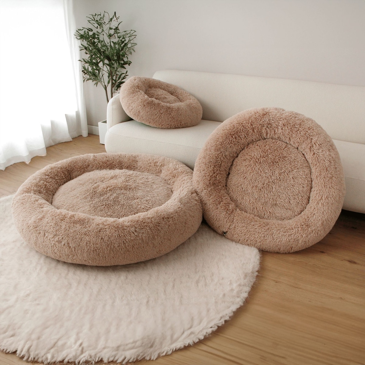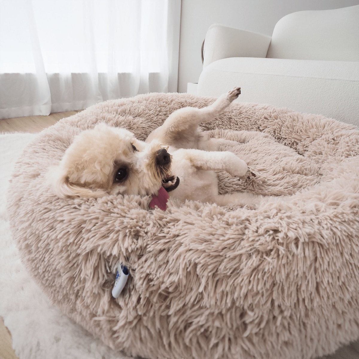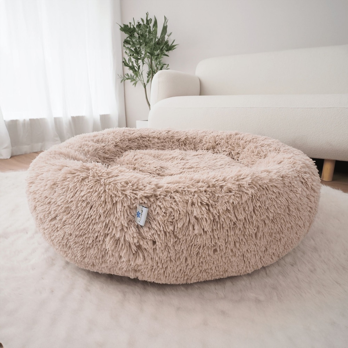 FurMe Anti-Anxiety Donut Bolster Dog & Cat Bed with Removable Cover, Oatmeal, Small