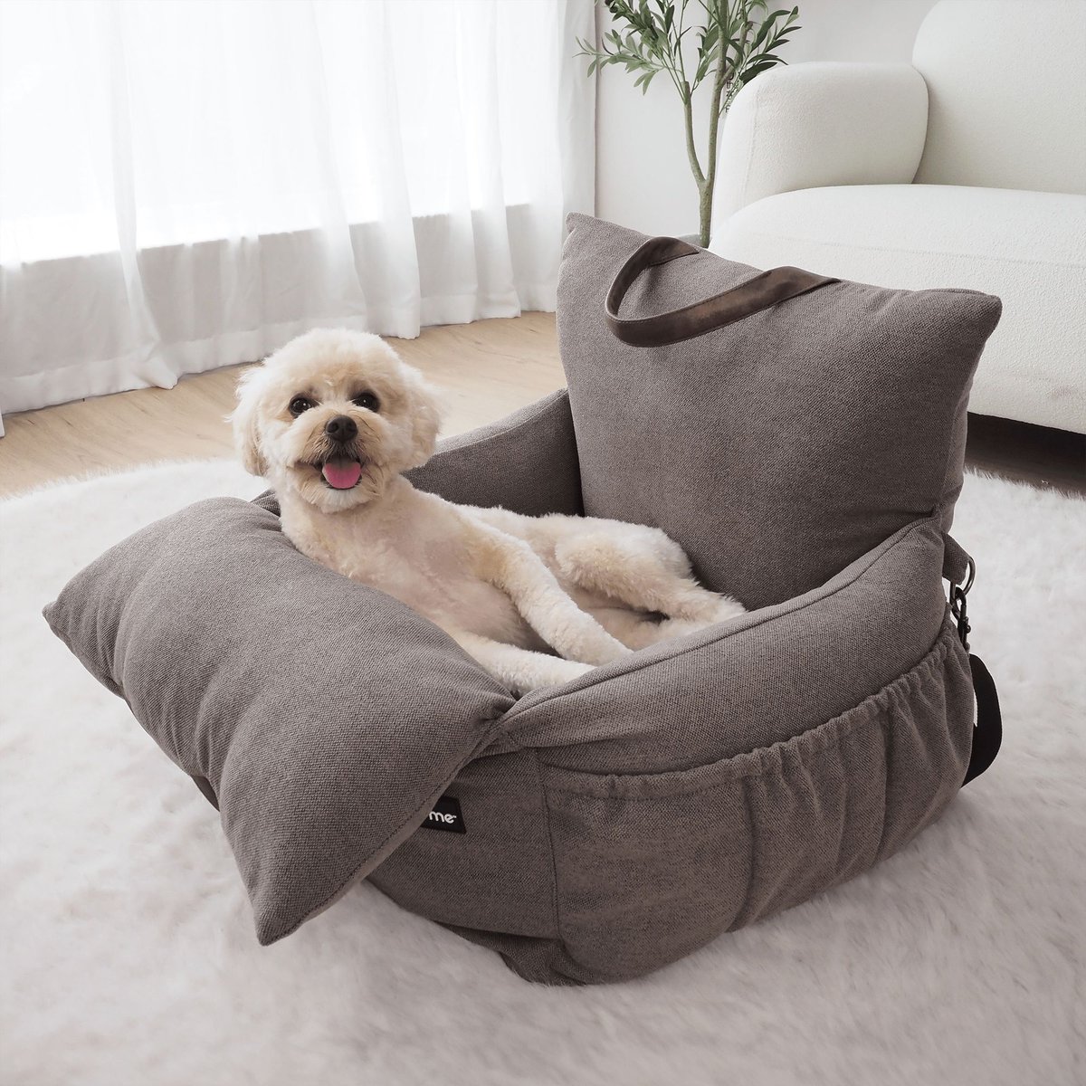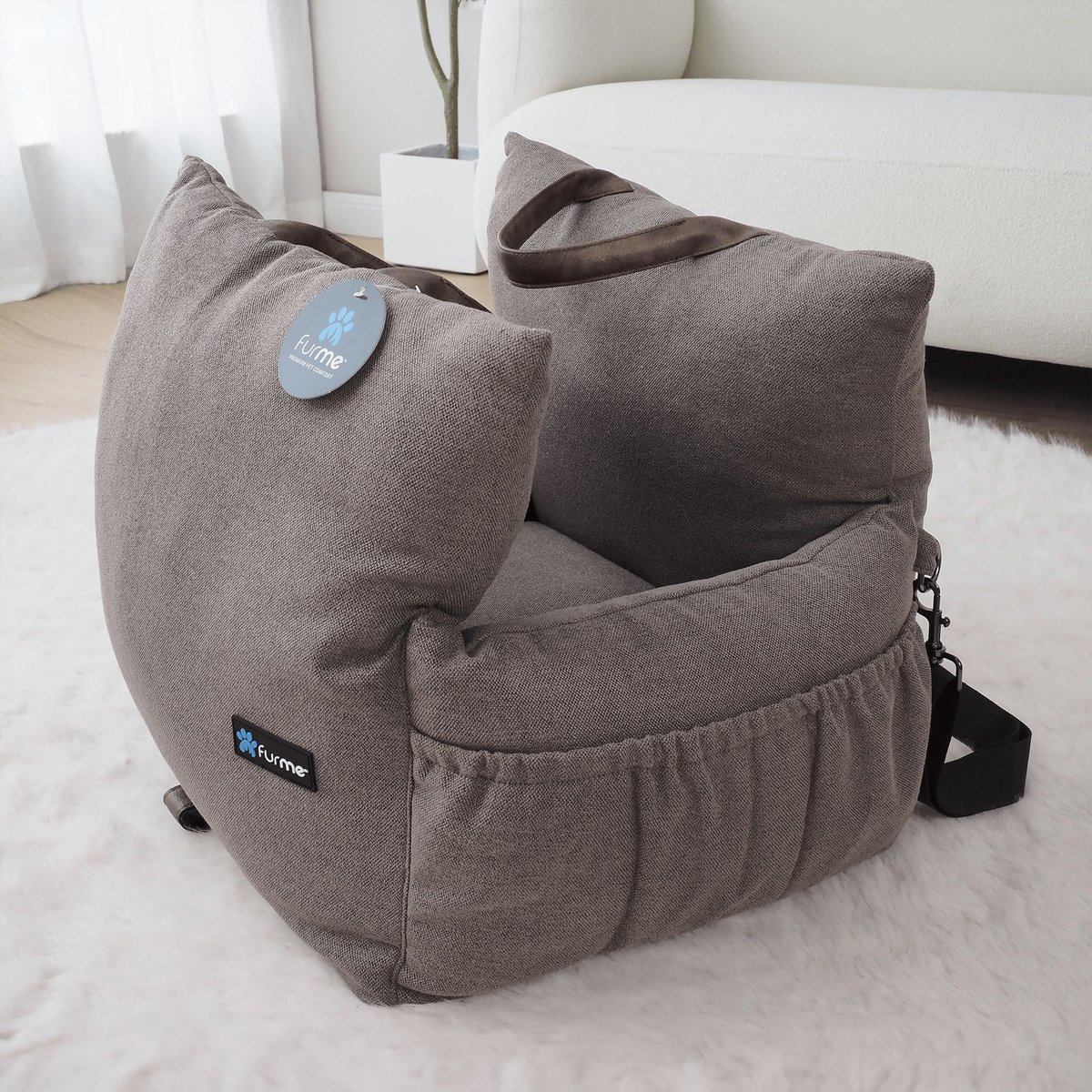 FurMe Pet Car Seat & Travel Bolster Dog & Cat Bed with Removable Cover, Brown