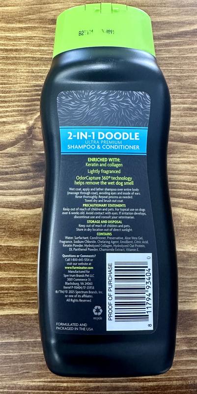 FURminator 2-in-1 Doodle Ultra Premium Dog Shampoo & Conditioner, Black/Green, 16-fl oz bottle