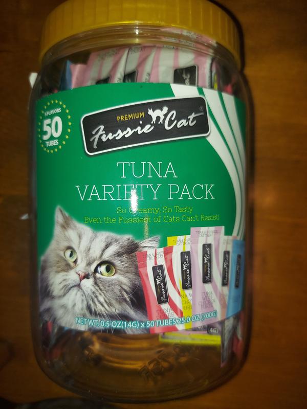 Fussie Cat Tuna 5 Flavors Variety Lickable Cat Treats, 0.5-oz tube, 50 count