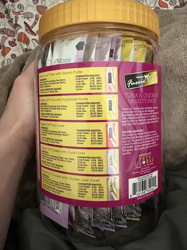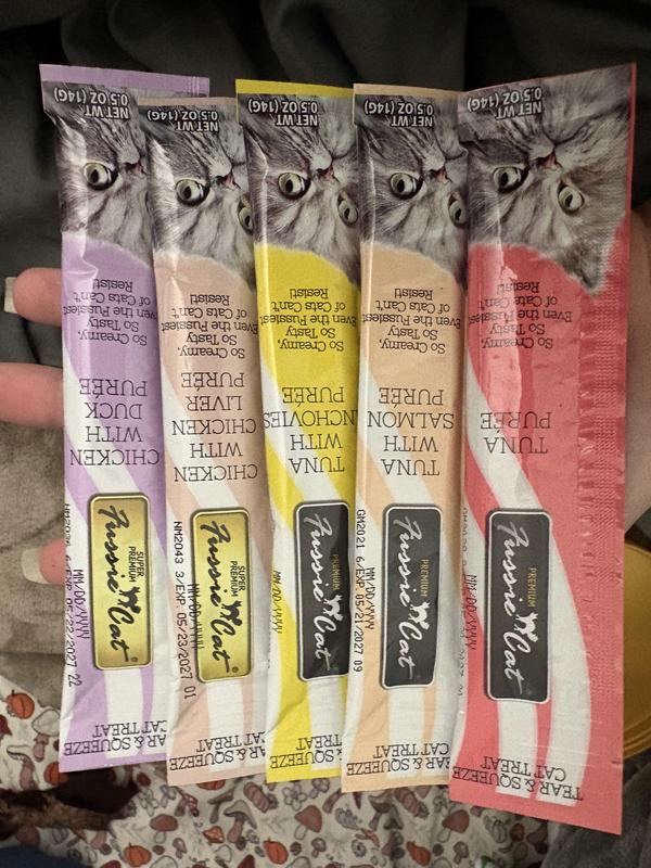 - DealFussie Cat Tuna & Chicken 10 Flavors Variety Lickable Cat Treats, 0.5-oz tube, 50 count$39.99 Chewy Price$37.99 Autoship PricePromo, Spend $100, Get $30 eGift Card with code NEWYEAR +1 deal