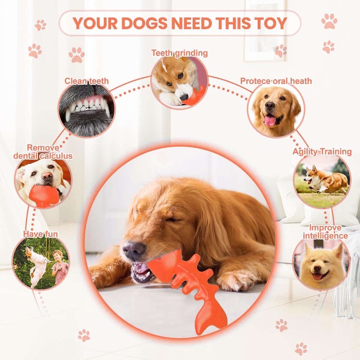 Designed for medium and large pups weighing 30-100 lbs, this indestructible fishbone chew toy features claw-like grips for easy holding and chewing.
