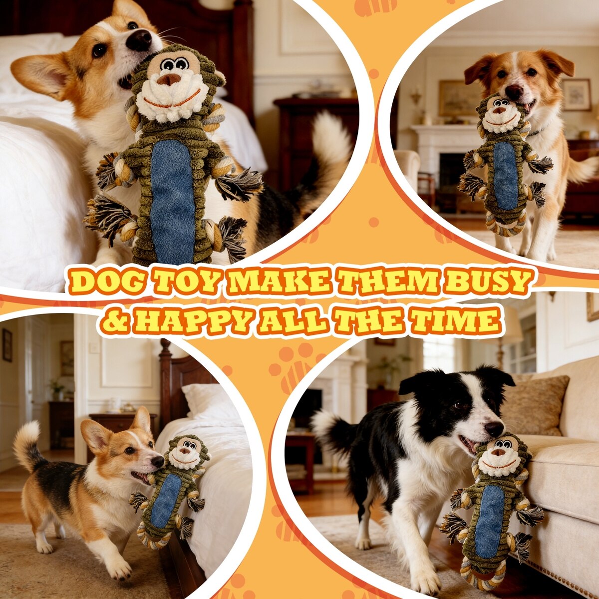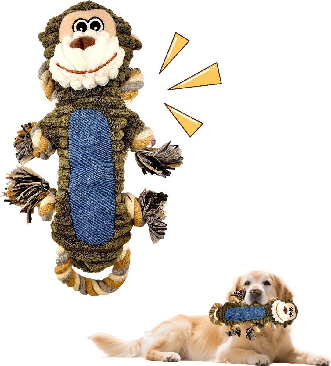 FUUFOME Durable Squeaker & Rope Monkey Dog Toy