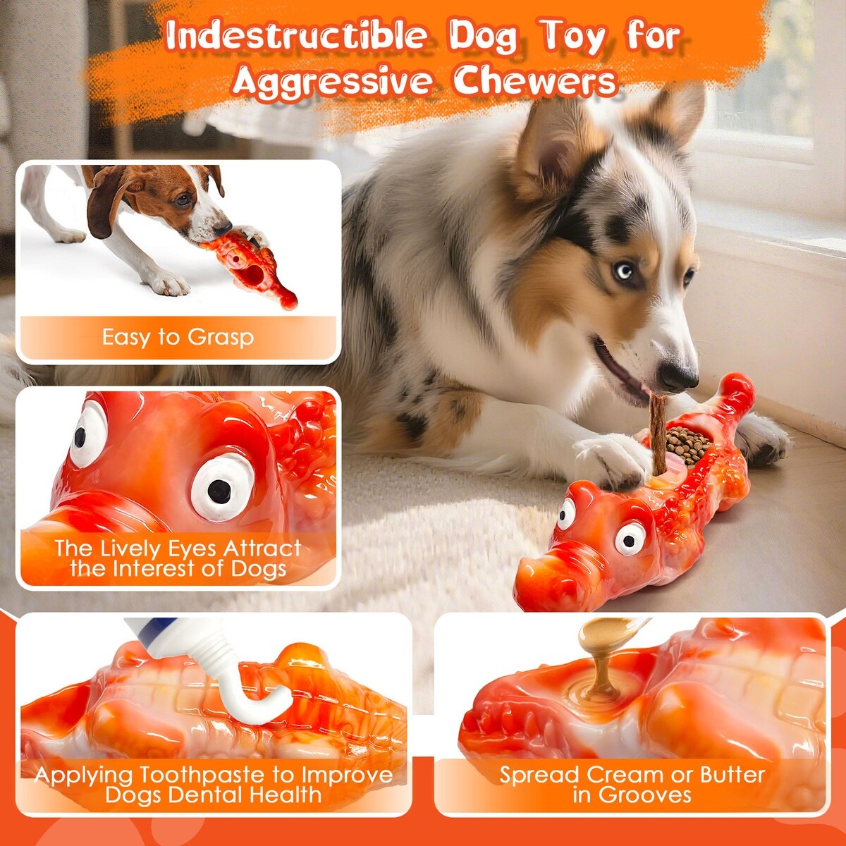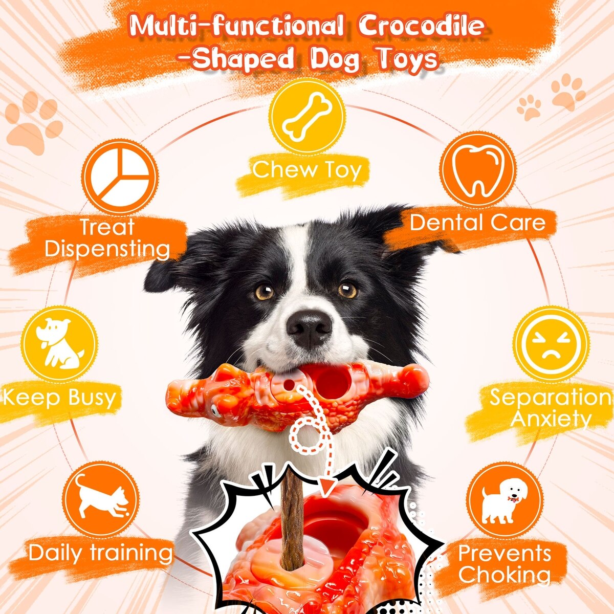 • The crocodile shape with playful googly eyes attracts your curious companion’s attention and encourages natural chewing.