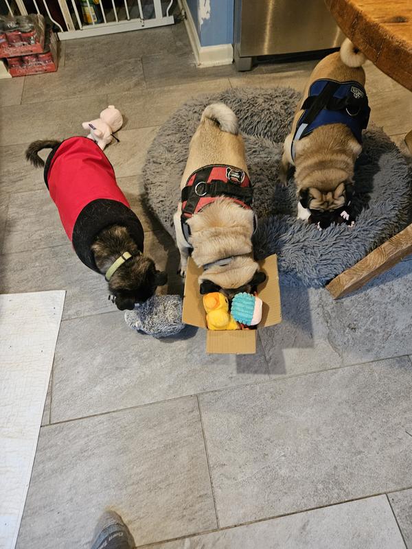 With an old playful beagle, an energetic border collie, and a strong-jawed border collie/pit mix, the toy set offers engaging fun for all three. The assortment is perfect for satisfying the softer-mouthed dogs who love to carry and squeak their treasures, while also providing interactive toys for the whole pack to enjoy during a supervised game of fetch or tug. The bright designs and multiple squeakers make them highly appealing, and while our power chewer requires a different solution for quiet chewing time, these are fantastic for getting everyone excited, reducing the chance of them focusing their intensity on just one toy! They are a great value for enriching your dogs' daily play routine.