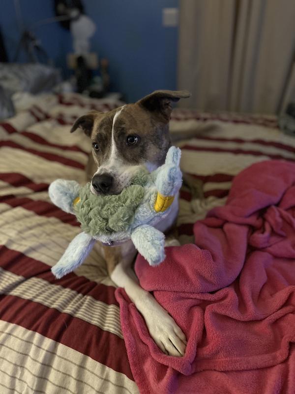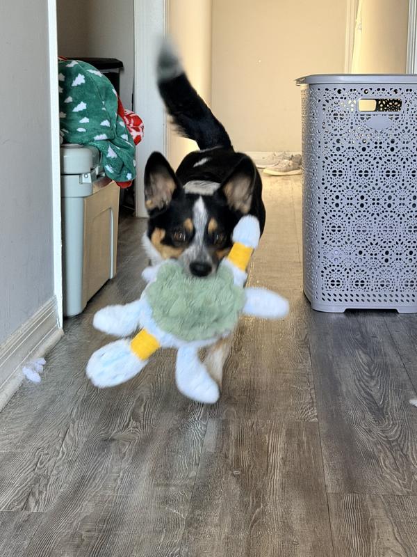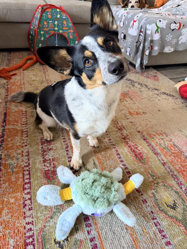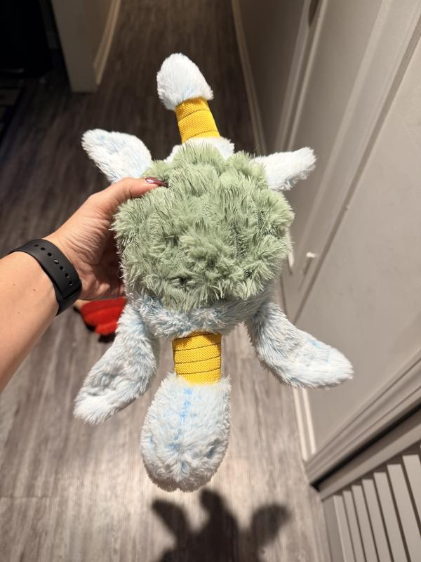 The turtle is very well made! Usually my corgi can pop a seam on toys really quick and this toy is still full intact. It’s soft and plush but also has the squeaker and crinkle my pup loves.