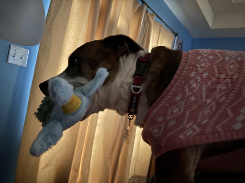 My dog loves this toy!! She immediately wanted it and has been carrying it around since. It’s one of her go-to toys. It’s the perfect size and holds up well. Note: