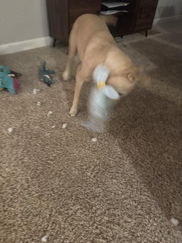 My dog loves his stuffed animals. This was no different. He played with it for hours a day and on day 4 he was able to find a weak spot and open it. It’s a well