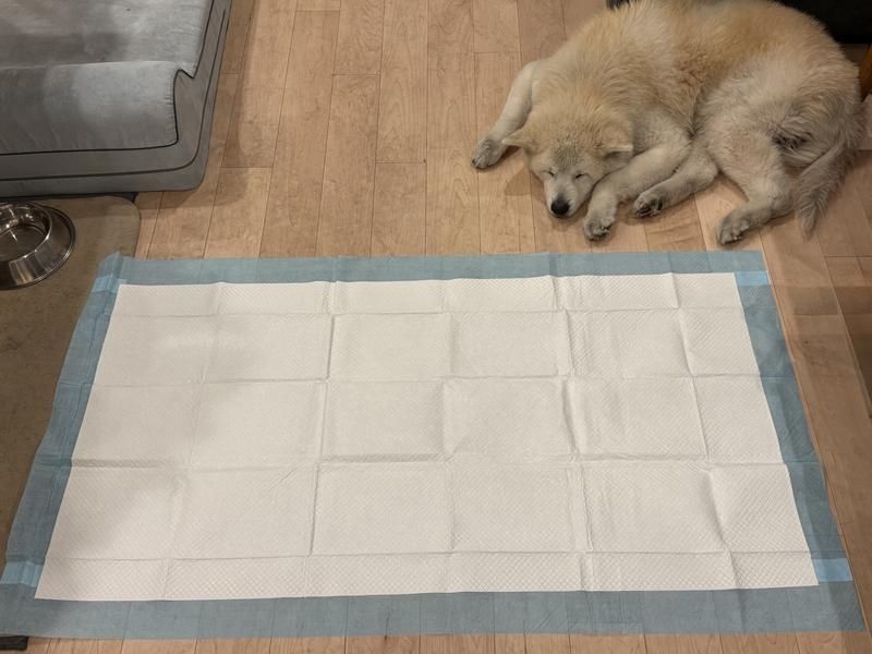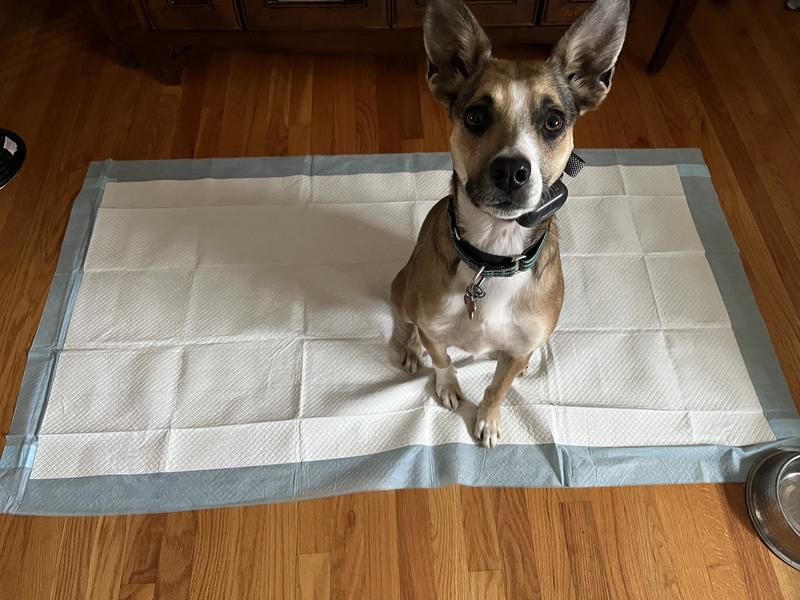 These pads are wonderful ! I got the Large size and they're perfect for my boy to lay on. Ping is a senior and is having trouble getting up fast to go out so I've put a few pads down where he lays to catch any accidents. The pads are very absorbent and save me a lot of work! I would definitely recommend these pads.
