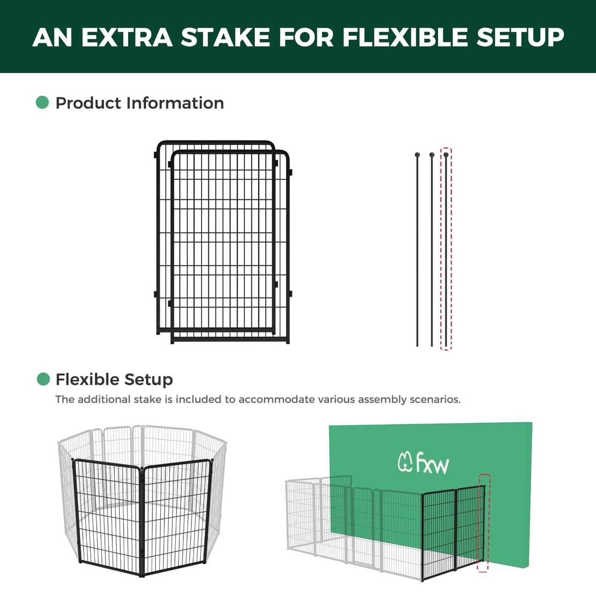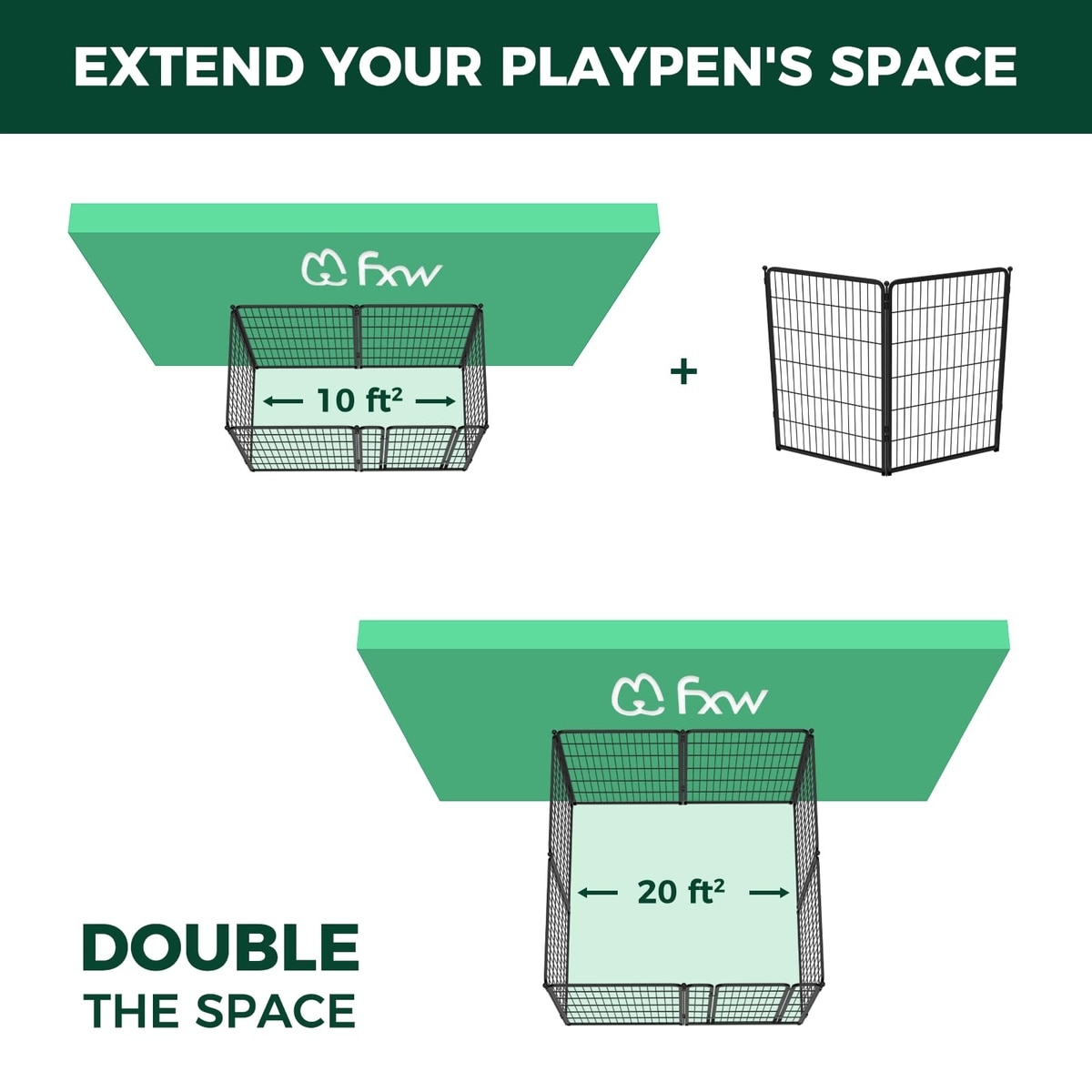 FXW Indoor Dog Playpen Enjoy stress-free setup with expandable panels as your dog grows. Strong construction, no sharp edges, and a threshold-free design promote safety and allow for easy entry. The FXW Fence-to-Wall Kit (sold separately) lets you secure it to a wall, too.