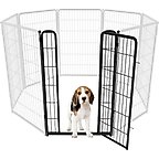 FXW Rollick Dog Playpen Freely connect or remove panels to create a playpen that fits your space indoors or out. Made with weather-resistant coating, rounded edges and a gravity-locking gate for safety. Rod-connection design enables tool-free setup and takedown in minutes.
