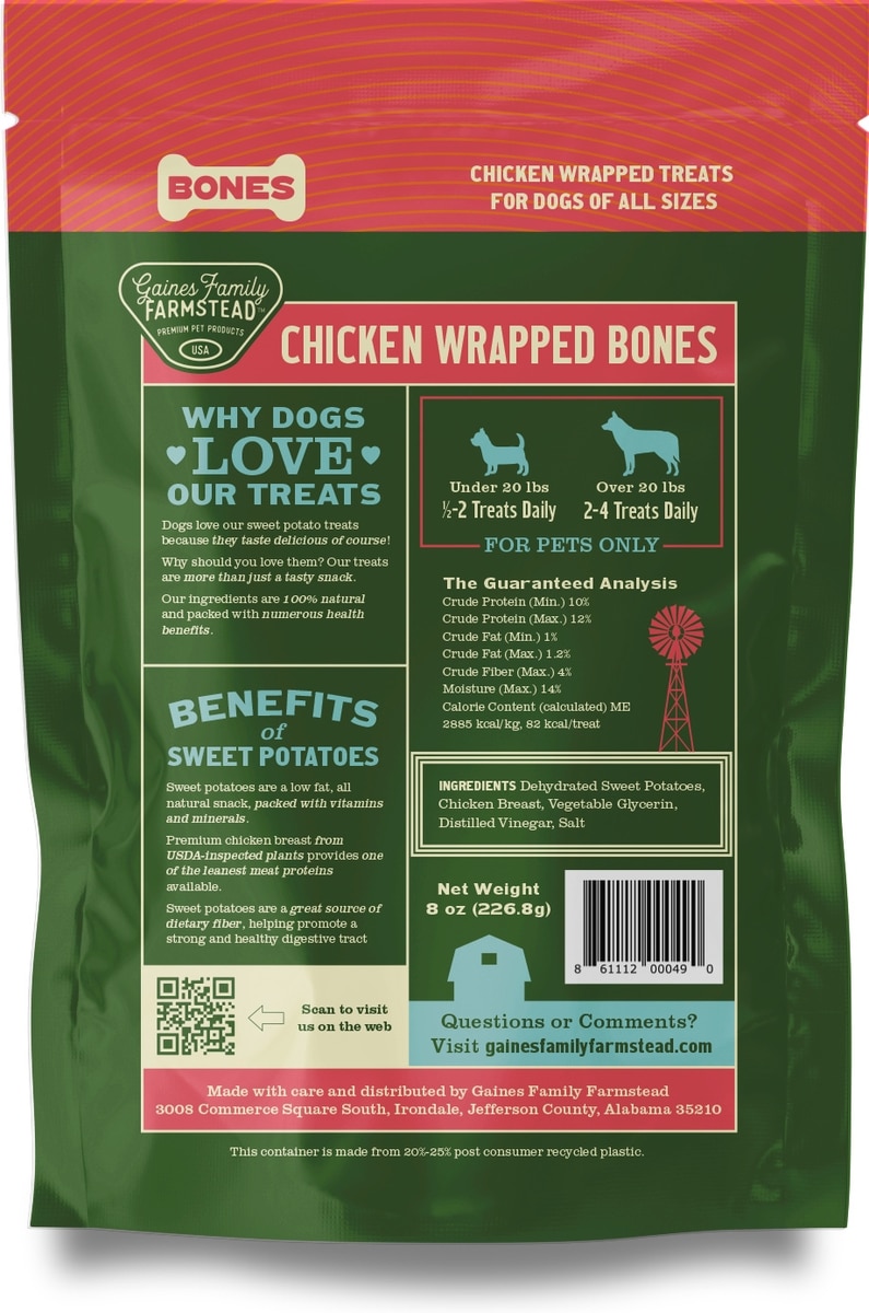 Gaines Family Farmstead Chicken Wrapped Sweet Potato Dog Bones, 8-oz bag