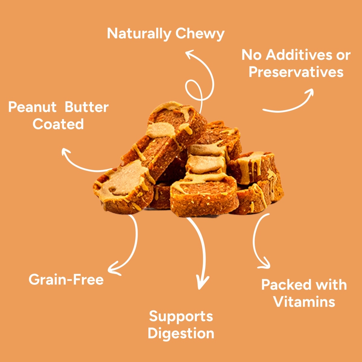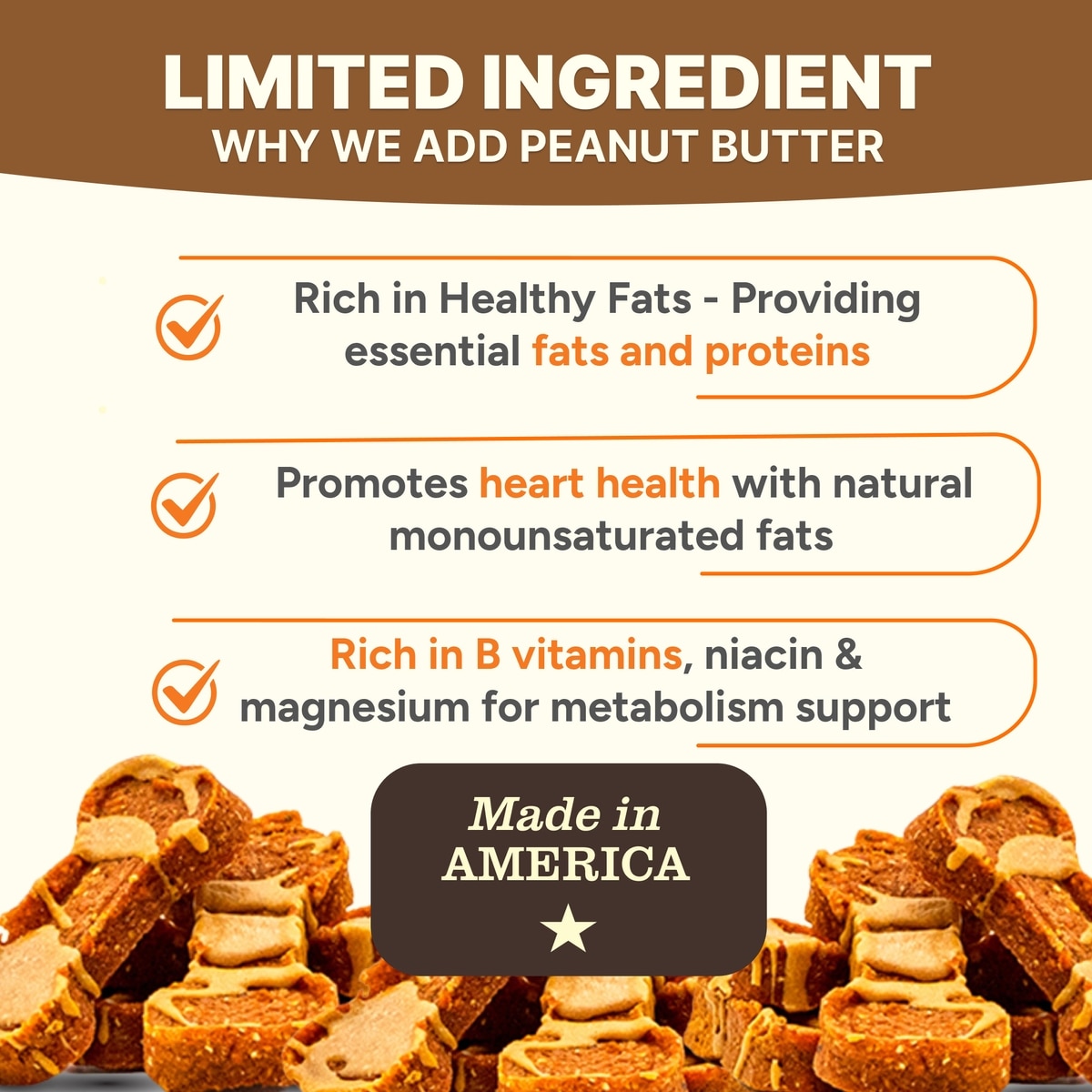 • These dehydrated sweet potato bones coated in creamy peanut butter are made without additives, preservatives, or fillers.