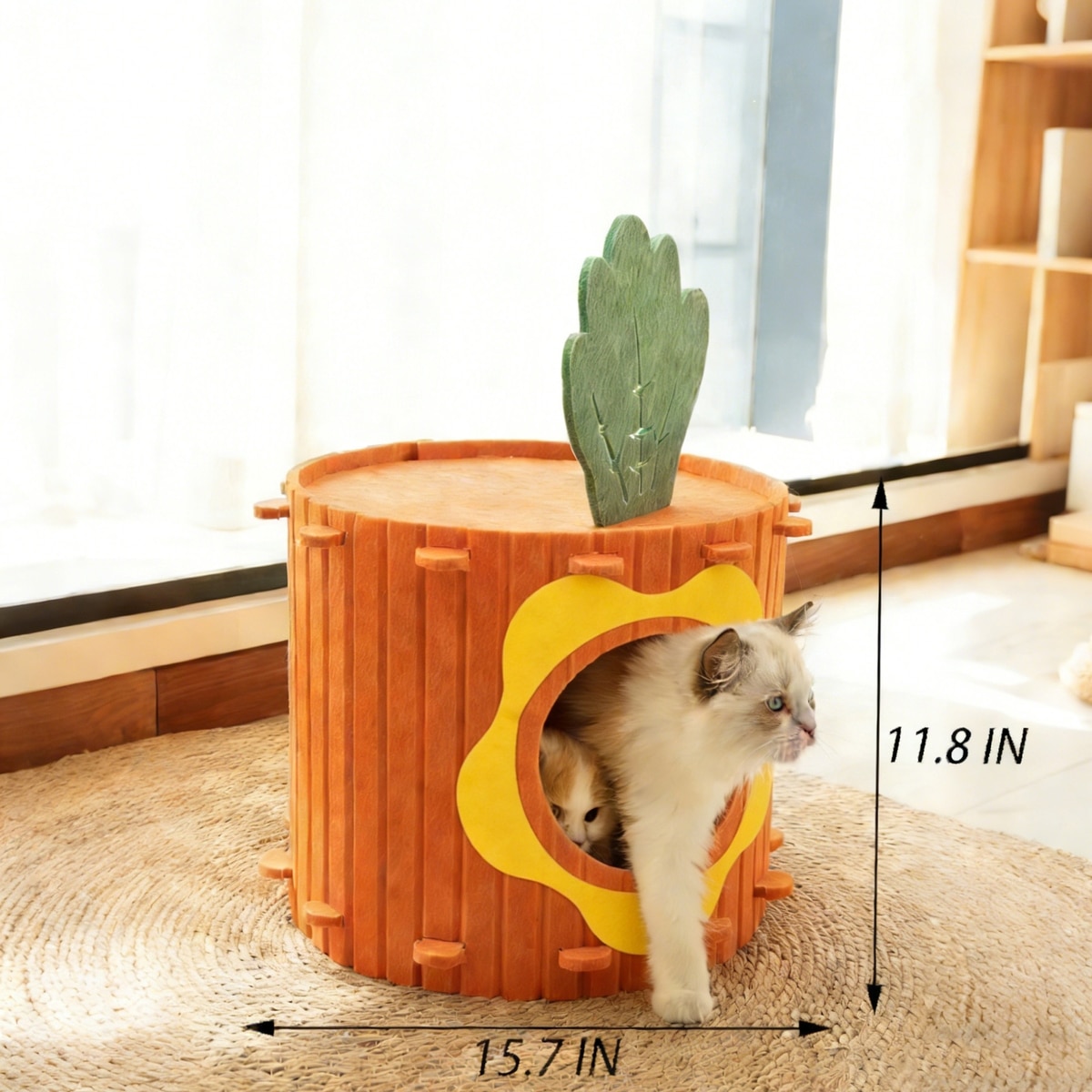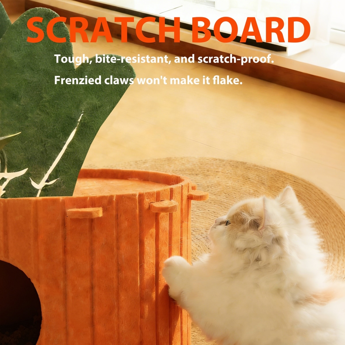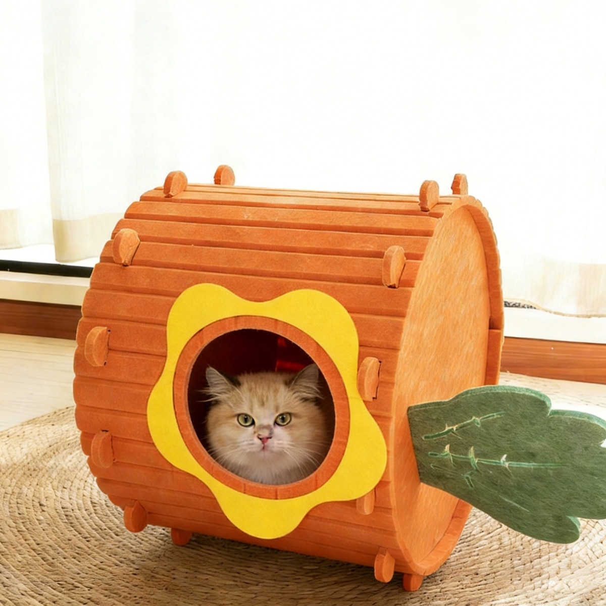Gapzer PeekabooIndoor Cozy Felt Covered Scratching Bed Cave Hideaway Fleece Multi Cat House & Condos, 15.7 x 15.7 x 11.8-in, Orange