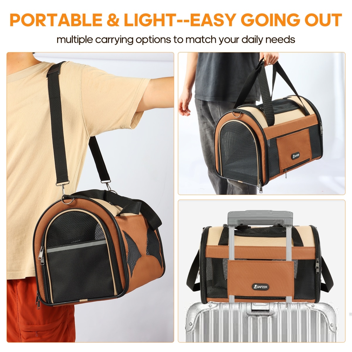Gapzer Soft Sided Collapsible Airline Approved Dog & Cat Carrier Bag, 18.8 x 11.8 x 12.6-in, Brown