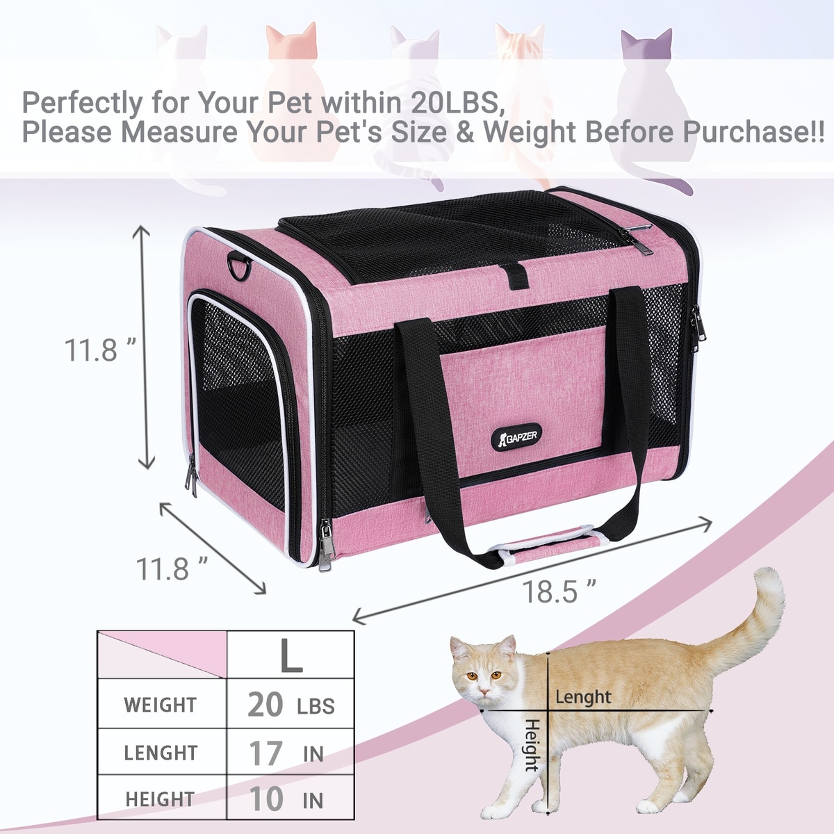 Gapzer Soft-Sided Dog & Cat Carrier, Pink