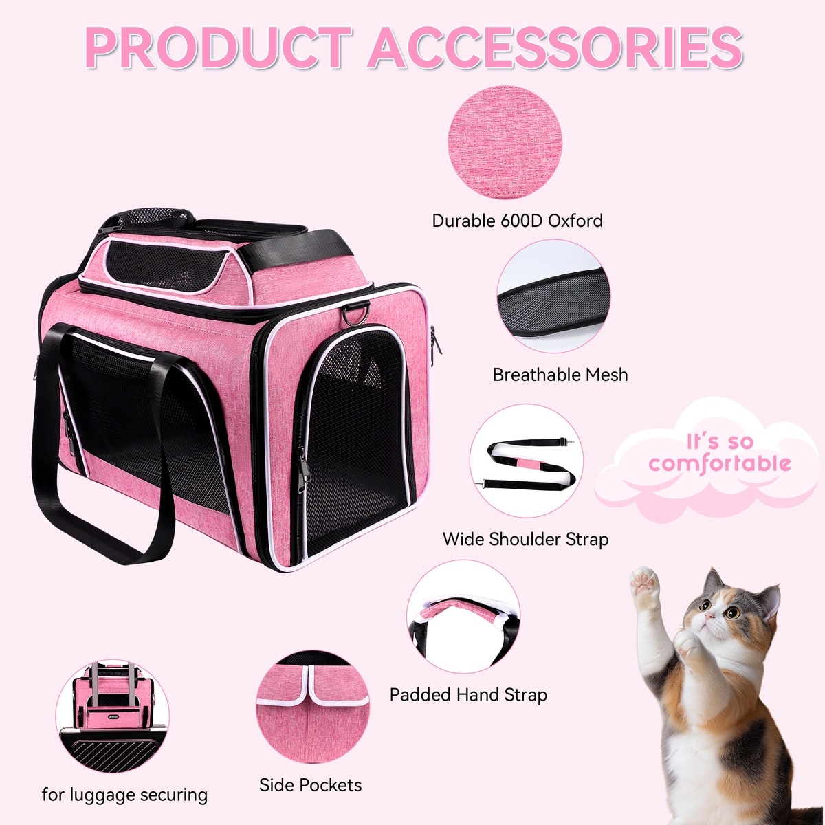 • Soft and comfortable carrier comes with a removable plush mat for your pet to lie on.