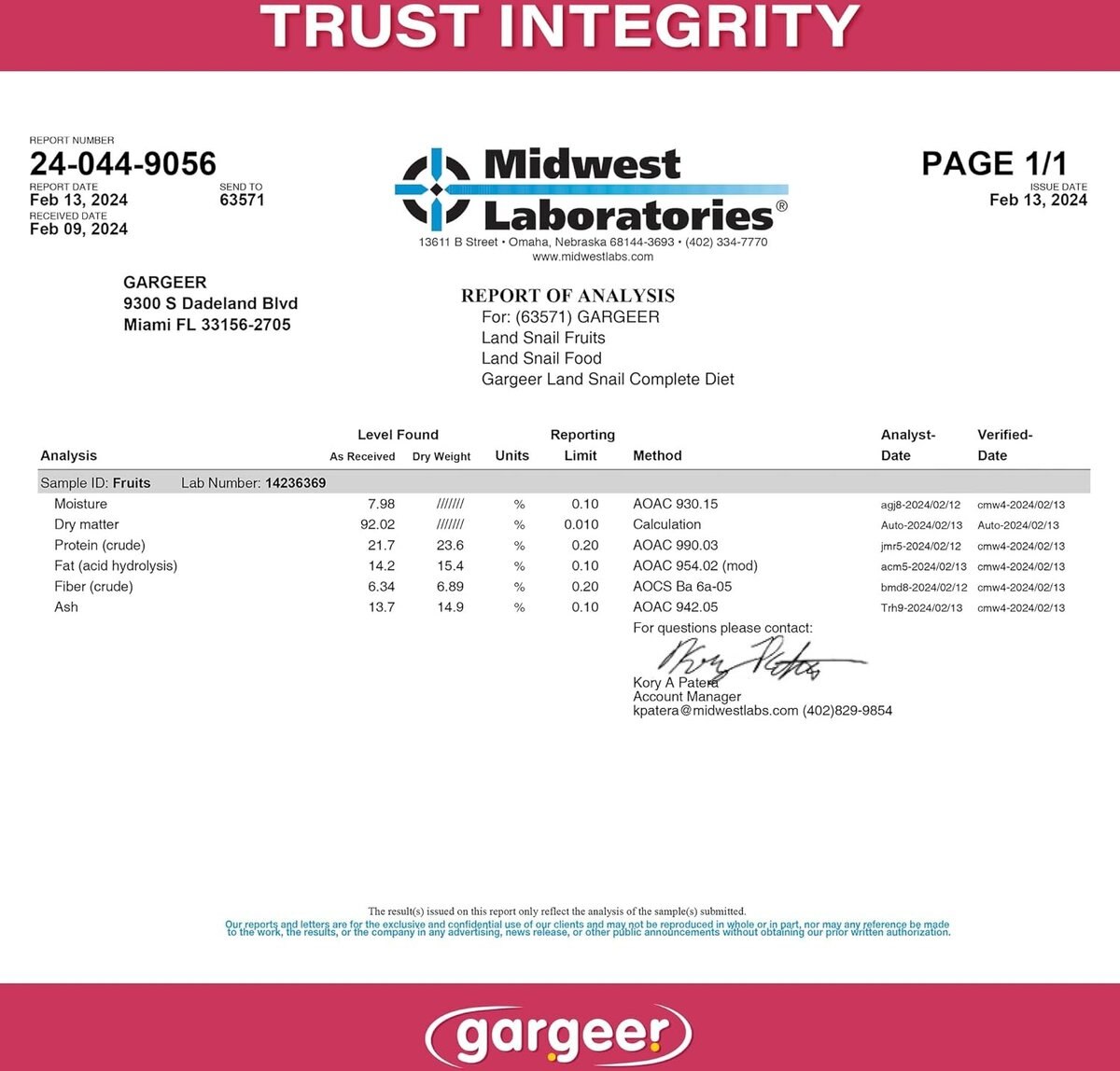Gargeer Complete Fruit Diet Land Snail Food, 2-oz bag
