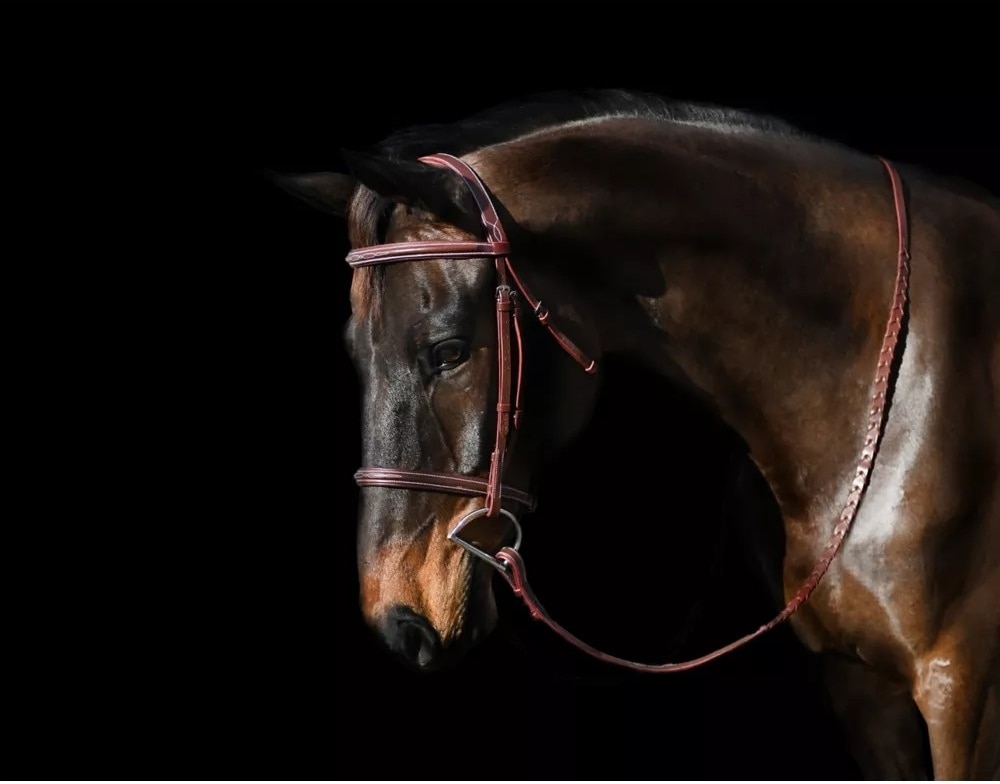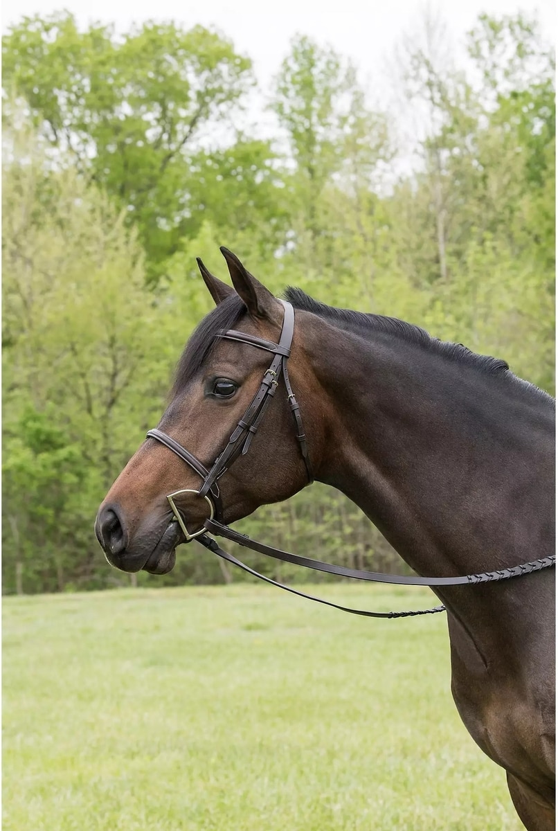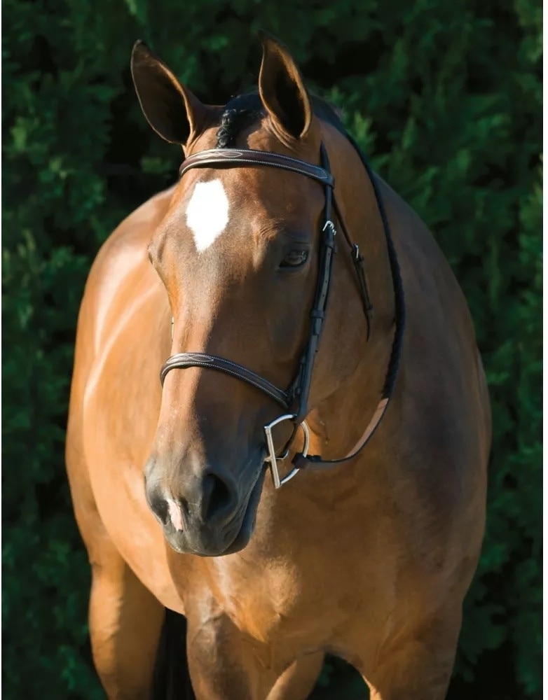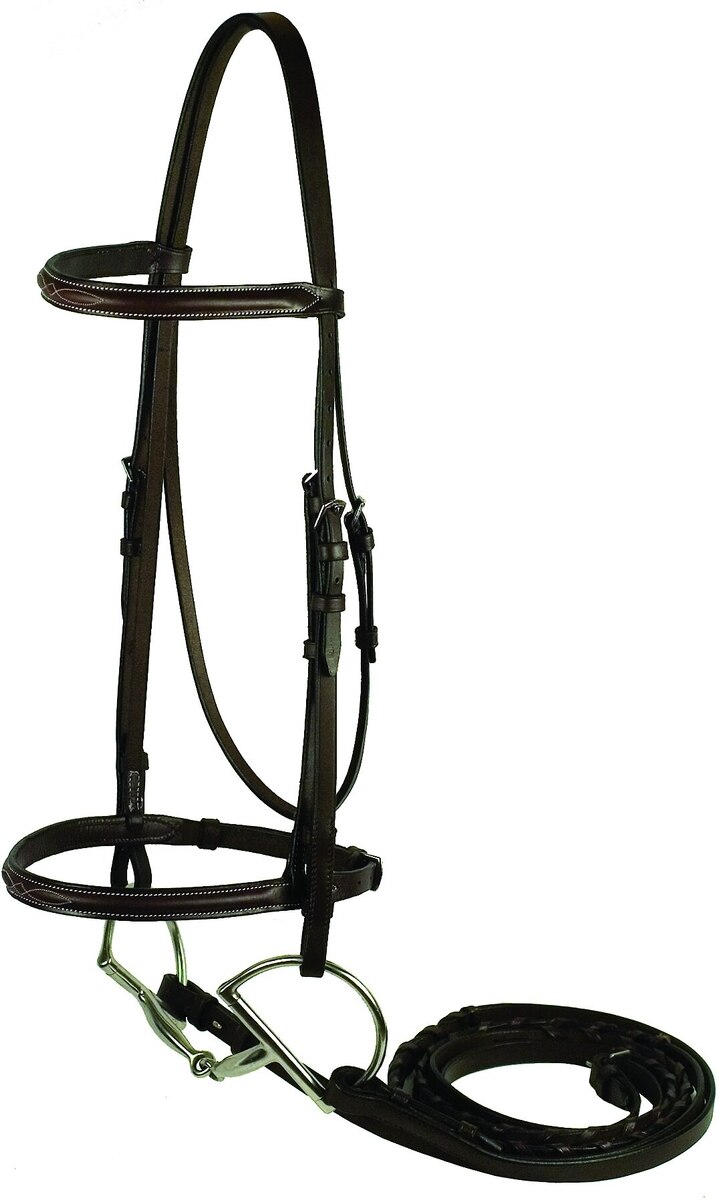 This bridle comes with plain laced reins which have hook studs for the attachment of a bit.