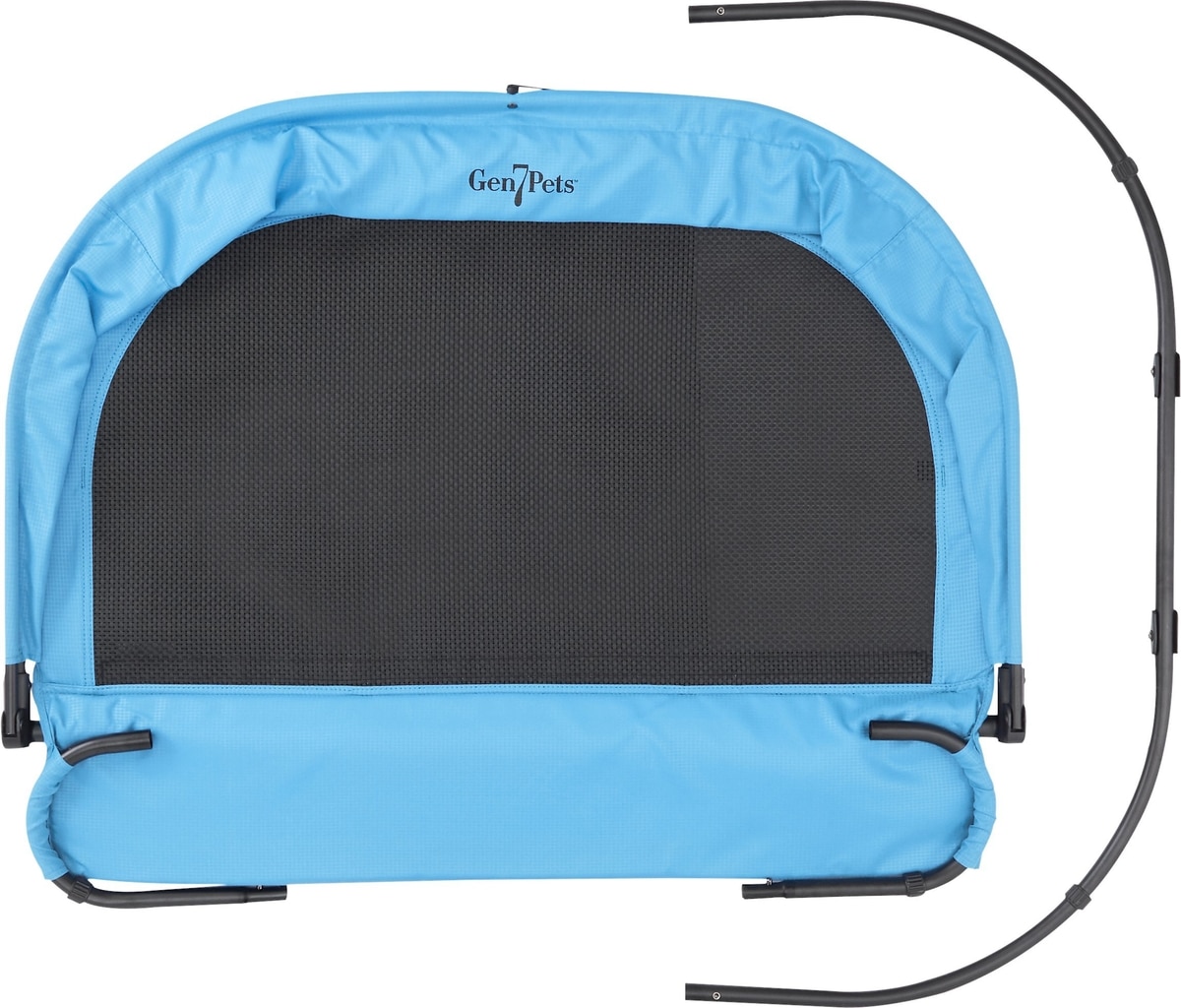 - A portable cot that’s raised off the ground to keep your pet comfy and dry on outdoor excursions and helps your pet stay above muddy, hot or wet surfaces.