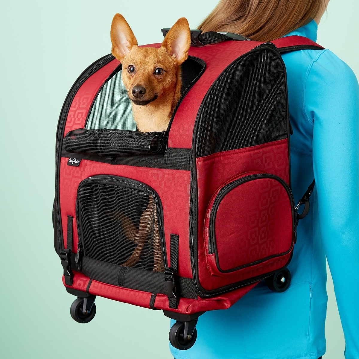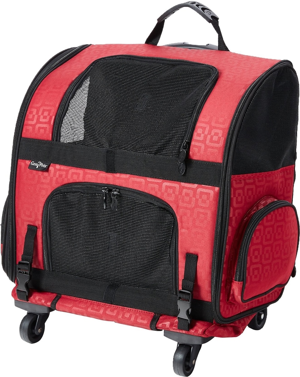 Gen7Pets Geometric Roller with Smart-Level Dog & Cat Carrier Backpack, Red, Up to 20-lbs
