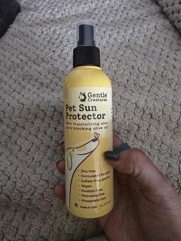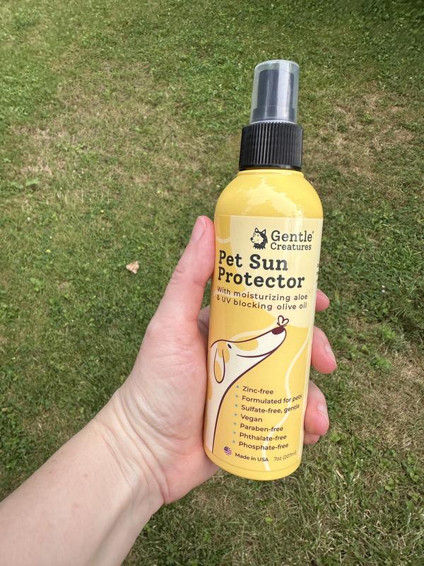 I have 2 Sphynx cats who love lying out on the screened-in patio when the weather permits. I have worried about them getting too much sun on their sensitive skin, but now I rub in a couple of spritzes of the Gentle Creatures Pet Sunscreen onto them before allowing them to take their patio naps. Only time will tell if this will prevent overexposure to the sun but I feel much better knowing they are protected while they enjoy their time in the sun.