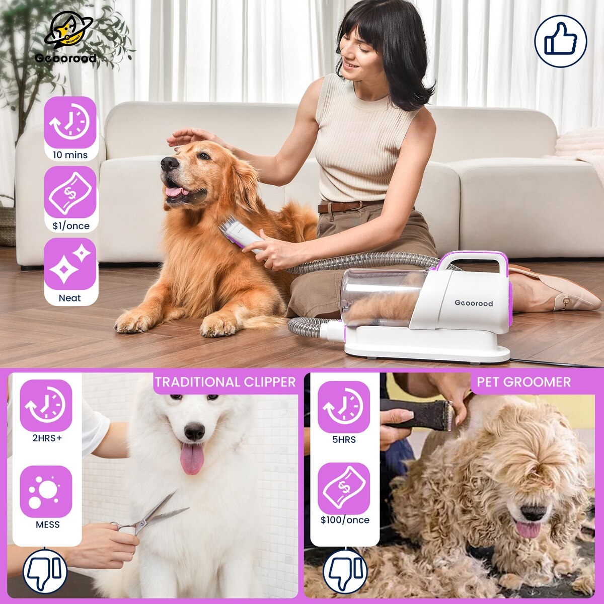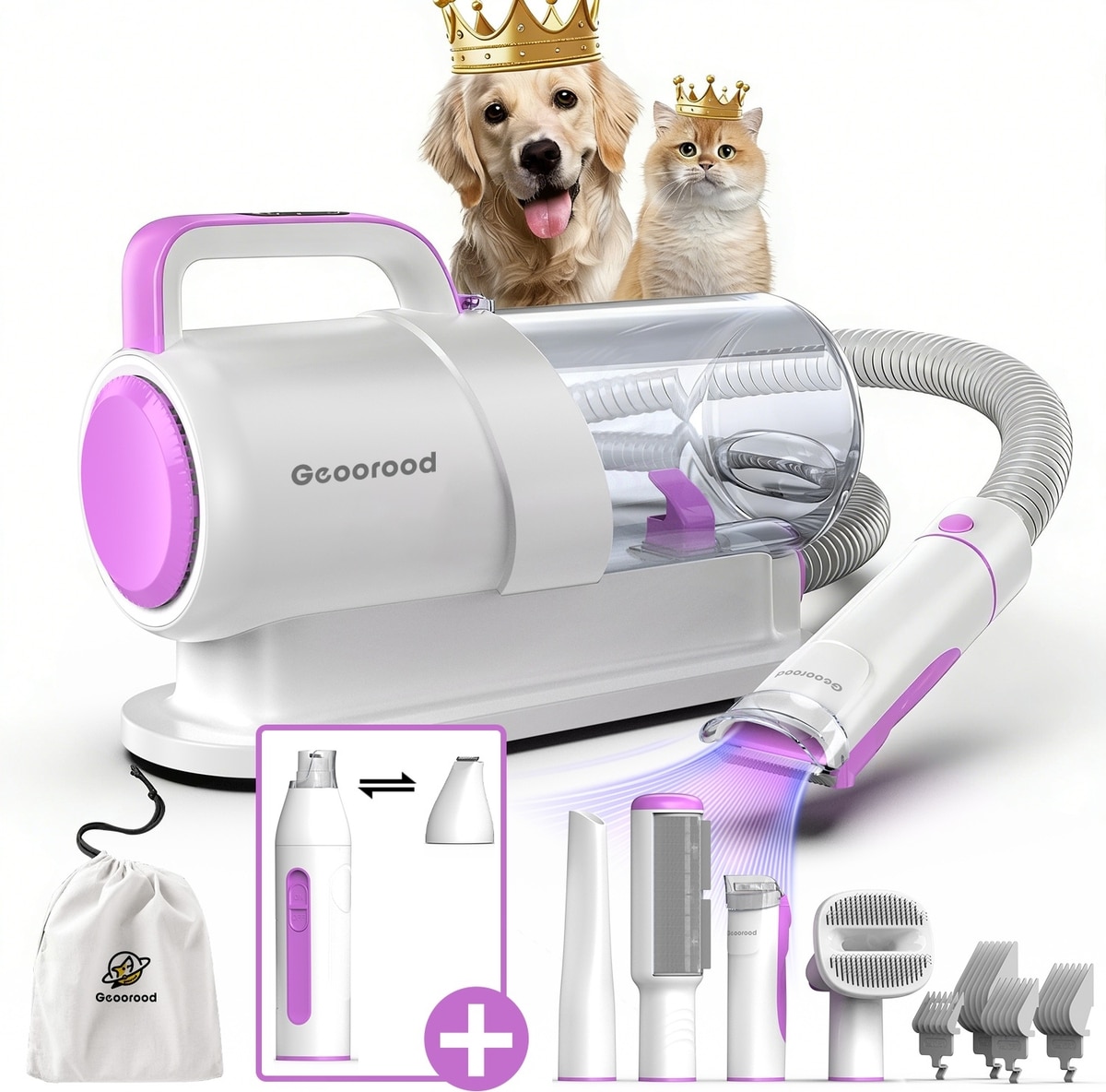 GEOOROOD 6-in-1 Pet Grooming Vacuum Kit, 2.2-L, White/Purple