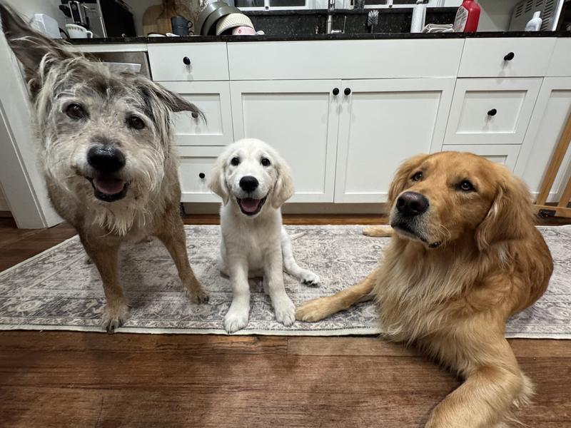 I have 3 dogs. A 13 year old female mutt at 64lbs, 3 year old male golden retriever, and now a 17 week old golden retriever female. When my 13 year old was paralyzed