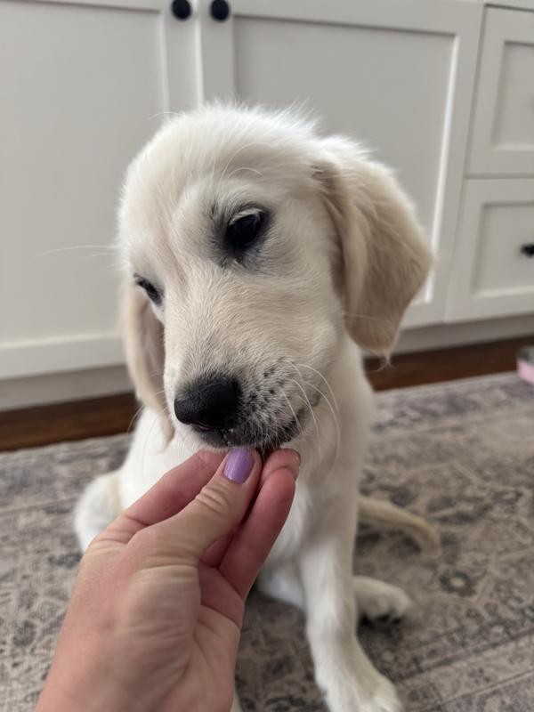 I have 3 dogs, a 13-year-old mutt, 3-year-old male golden retriever, and a now 16-week-old female golden retriever. My two older dogs never had good poop. For a little while, they have been on prescription food. It’s been helpful mostly for their first poop of the day but it’s usually still a bit wet. This supplement has improved their poops and makes me feel more confident that I can switch back to regular food since the prescription is more expensive. Another important thing to note is, my 3-year old golden never cared for food. He wouldn’t even take sandwich meat, cheese, etc. He takes these treats! It’s been so hard for me to find anything he likes, so I’m happy for that. Overall, I recommend these treats, especially if your dogs never have solid poop.