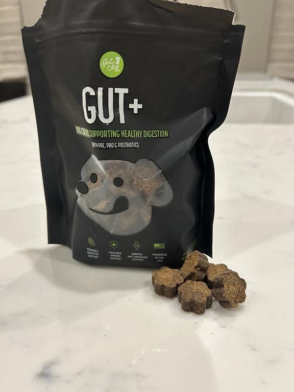 I was a bit hesitant to try Get Joy Gut+ because a lot of these products don’t seem to work. My 12 year old Pomeranian usually has a healthy gut but as she’s gotten older I find certain foods and treats upset her stomach. I’ve been giving her Get Joy Gut+ for only a week and have noticed improvement with her poops almost immediately. I like that these have pre and pro biotics to help with her gut health and love that it’s made in the USA. Definitely adding this to her daily supplements.