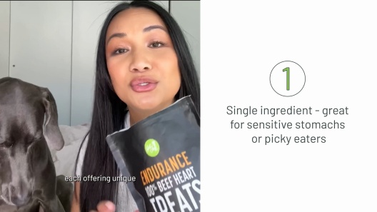 Free from grains, gluten, GMOs, and added hormones, these single-ingredient treats make snack time stress-free, especially for dogs with food sensitivities. It’s clean, functional nutrition you can feel good about, snack after snack after snack.