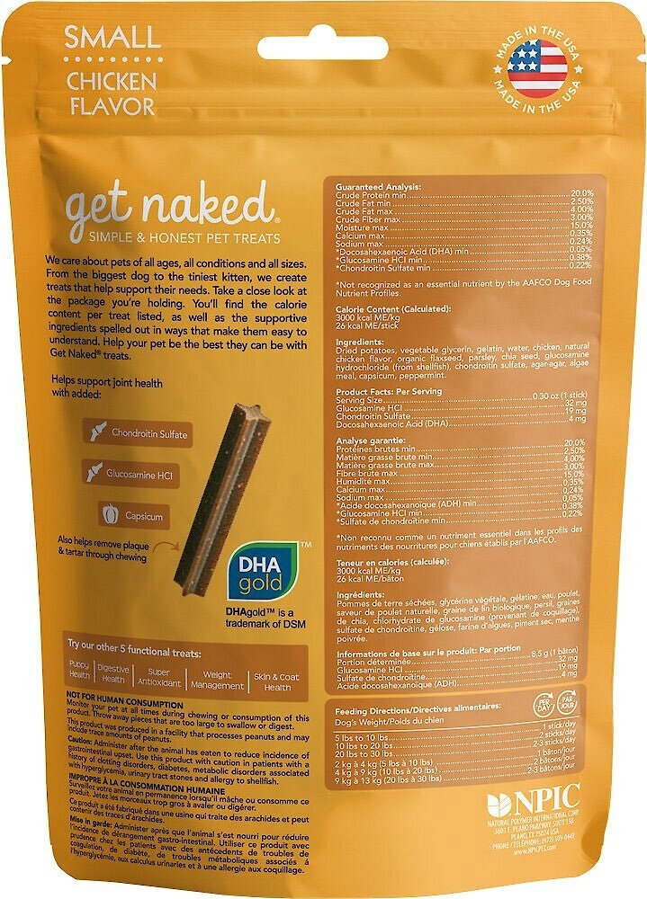- Get Naked Weight Management Small Grain-Free Chicken Flavor Dental Dog Treats, 6.2-oz bag, count Varies$7.79 Chewy Price$9.39 List Price$7.40 Autoship PricePromo, New Customers Only: Spend $49+, Get $20 eGift Card