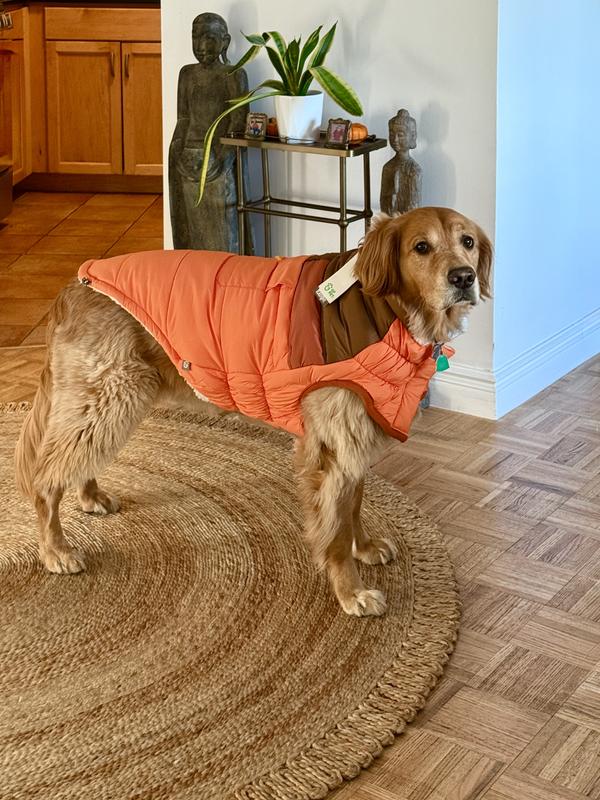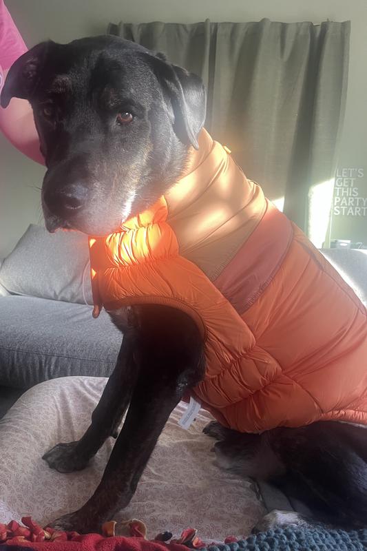 Thrilled with this puffer for our golden retriever GrandPup. So warm and beautiful. Price was awesome. Thank you Chewy for having great selection, larger sizes at super prices. Will be back for more!