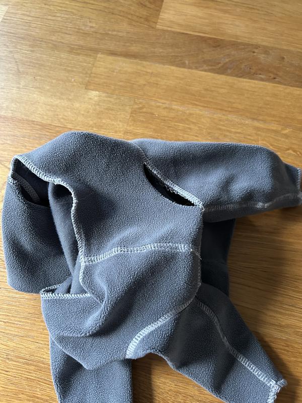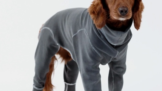 Simply pull the onesie over your dog's head, insert the front legs, pull to cover the back, and then insert the hind legs. With great stretch, there is no fuss!