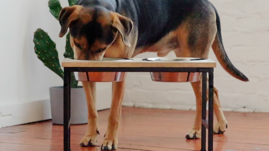 - Mango wood double feeder with super-elevated metal base makes a comfortable and ergonomic feeding experience for your big or tall dog.