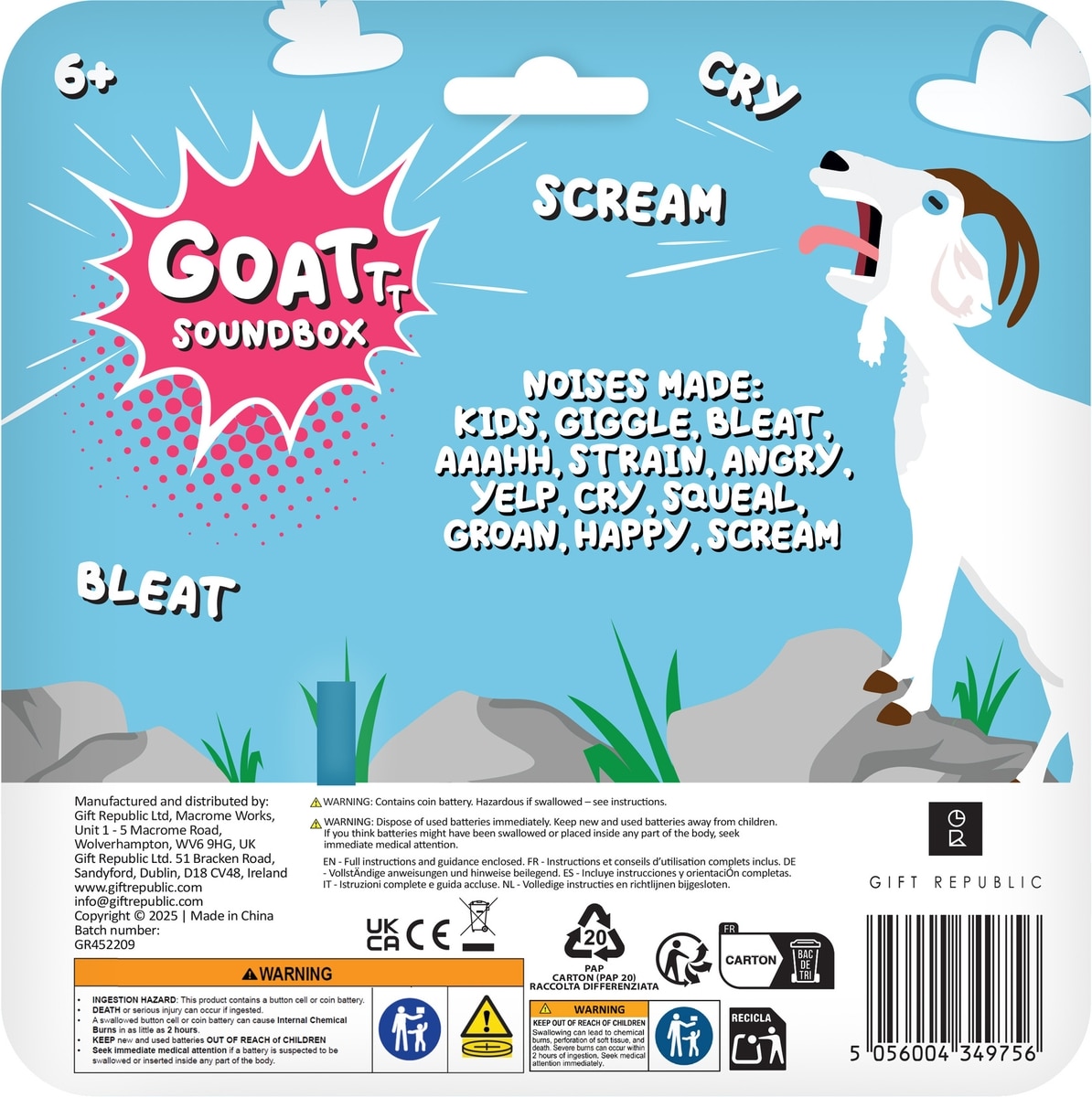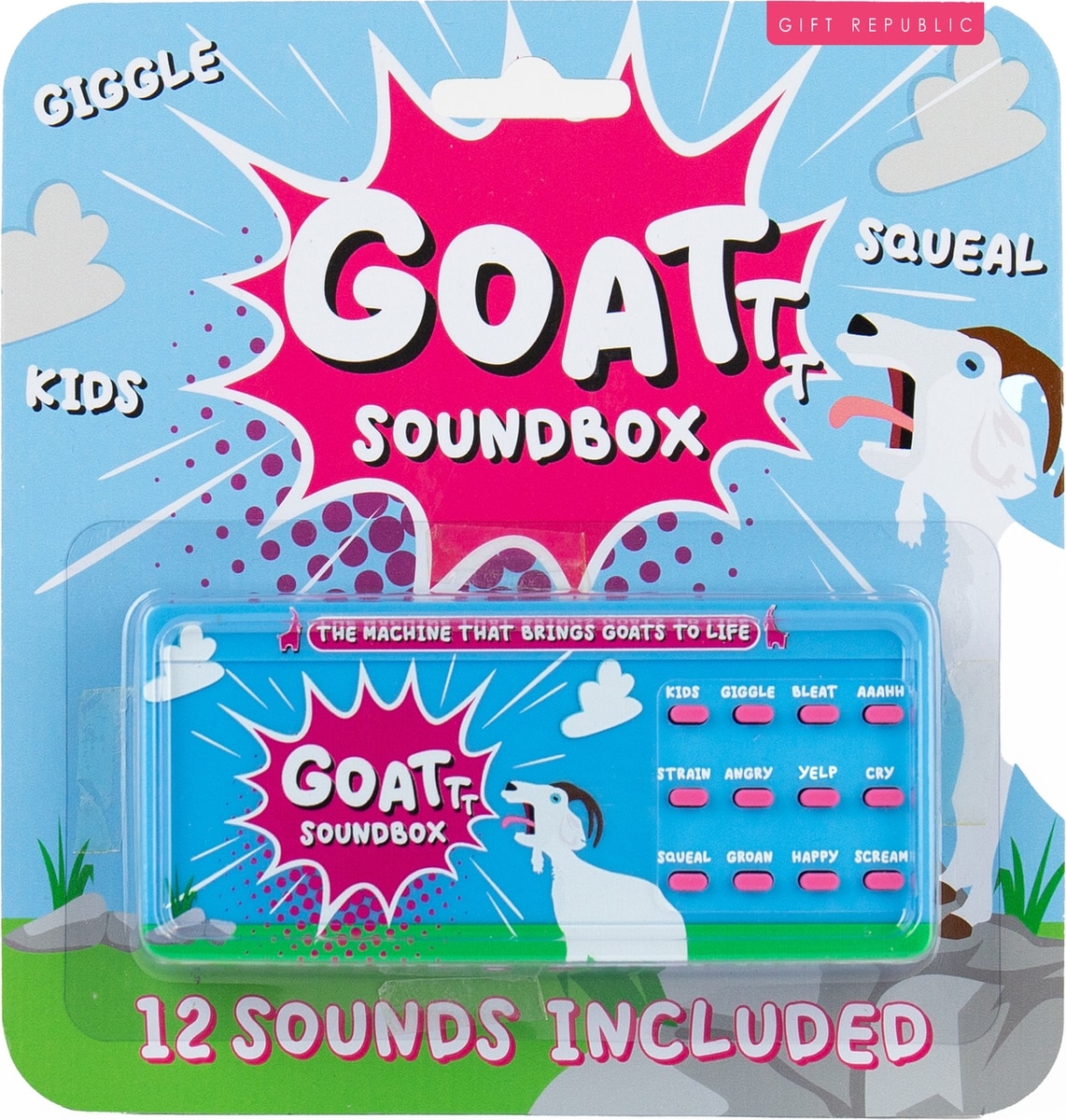 Features 12 hilarious goat sounds, from playful bleats to dramatic screams.